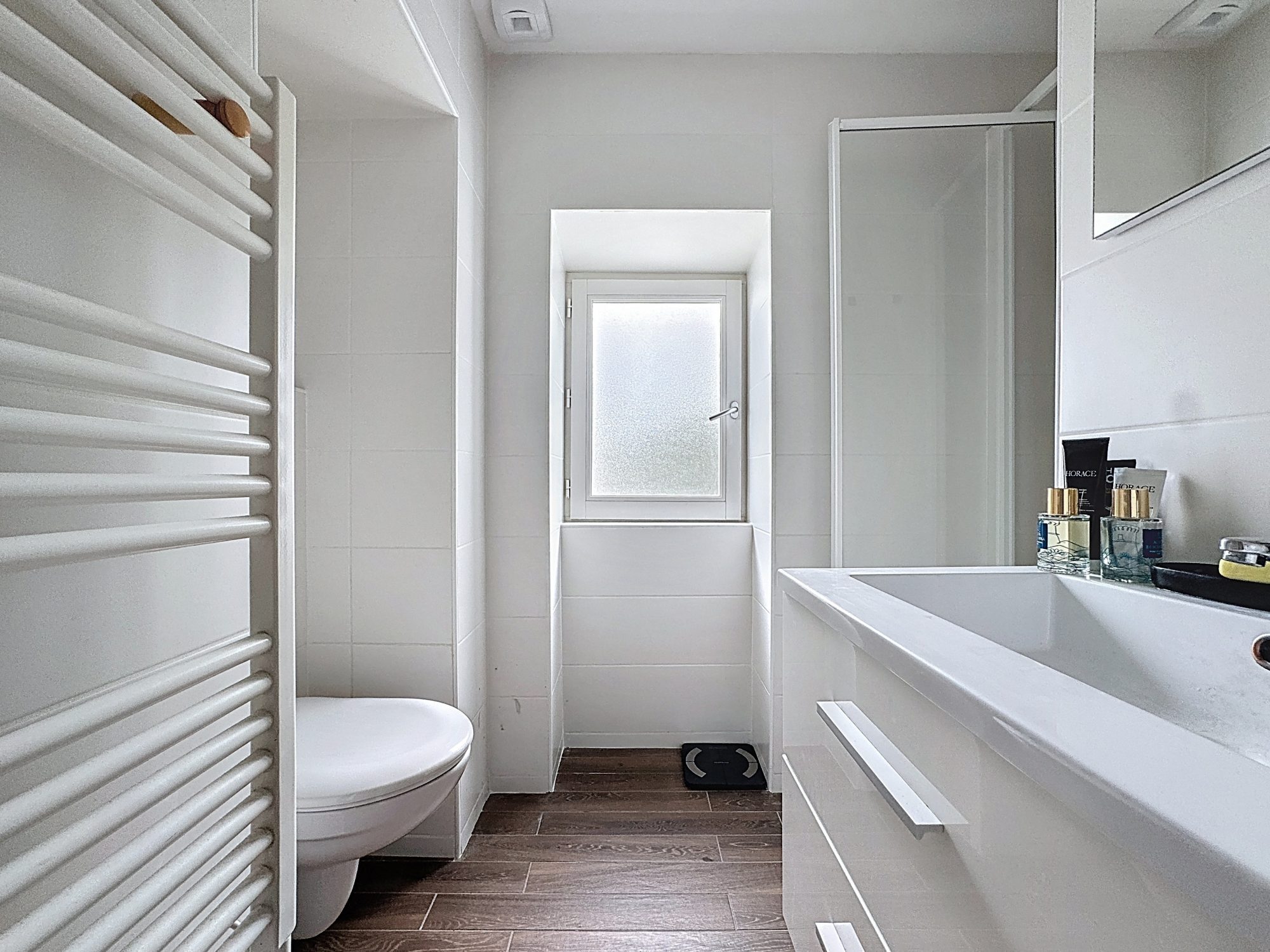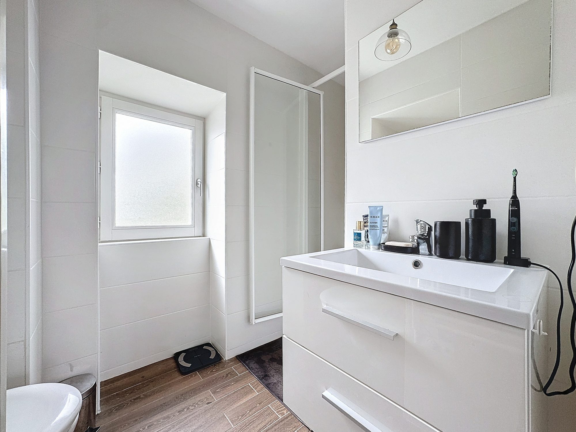 Le coin nuit se compose d'une chambre avec placard de 9,5m2 et d'une salle de bain récente avec son WC.