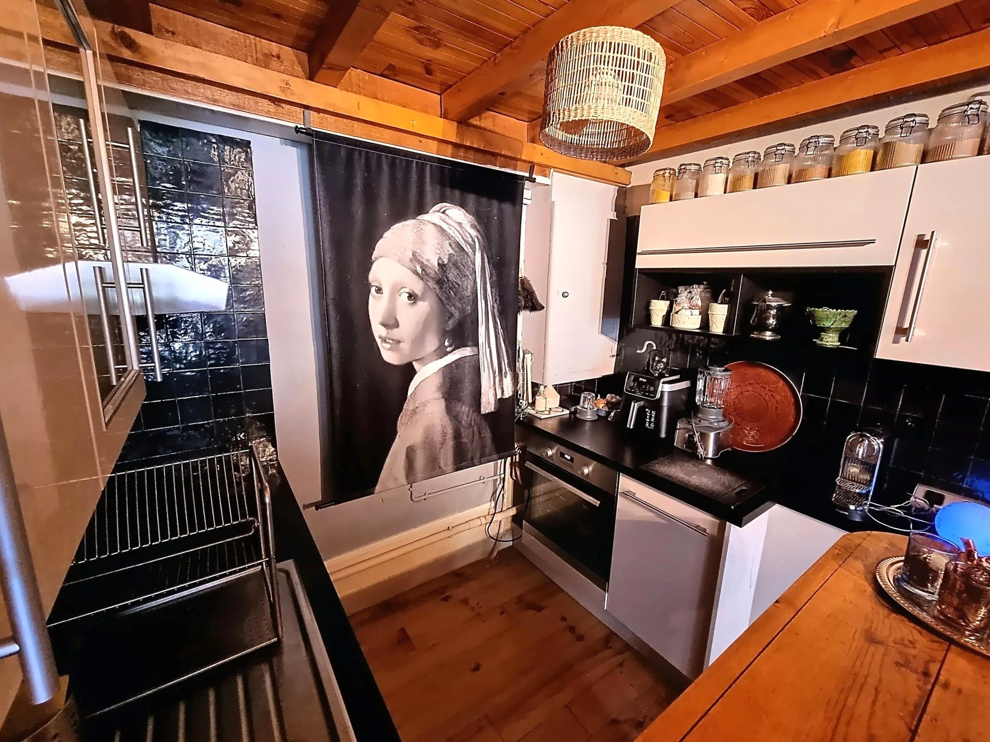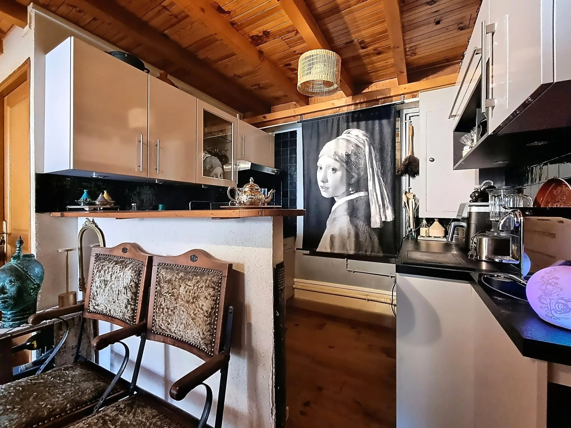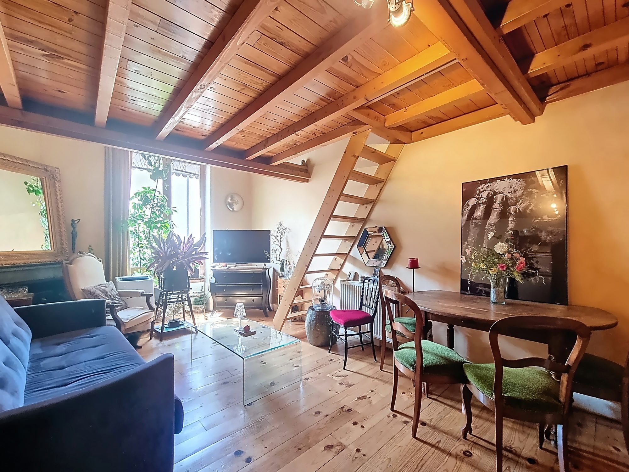 Le salon peut être facilement climatisé via un dispositif mobile puisque une gaine d'évacuation à été installée.