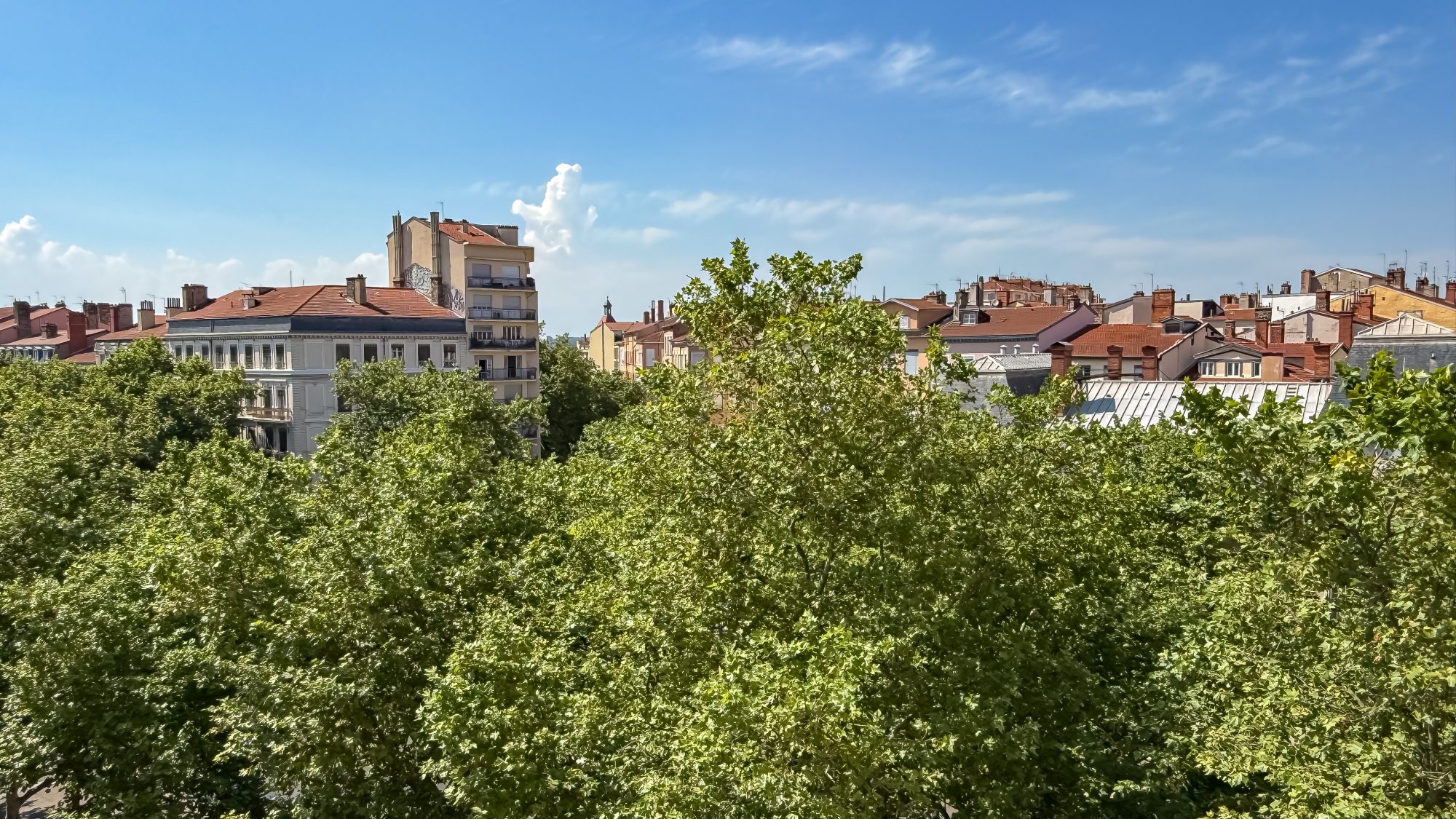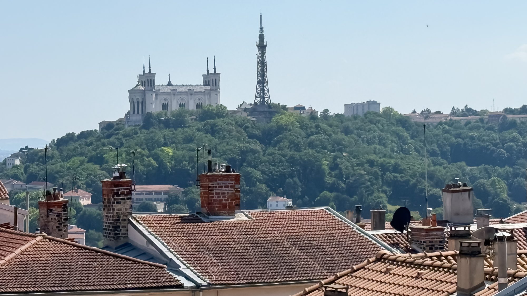 - L'absence de vis à vis avec la vue en regardant vers la gauche sur la basilique de Fourvière.