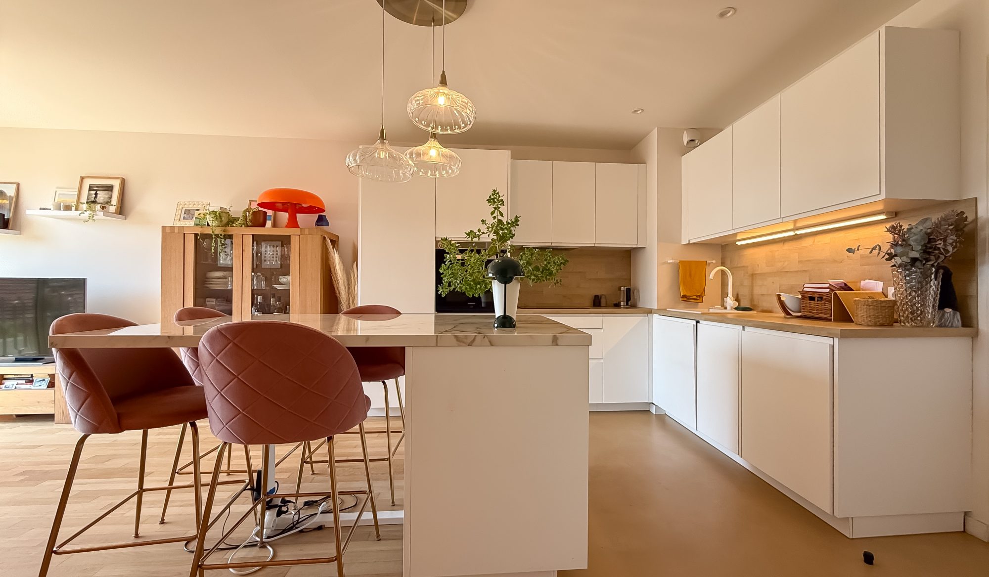 * Belle pièce de vie de 24 m² très lumineuse grâce à la baie vitrée tout hauteur.