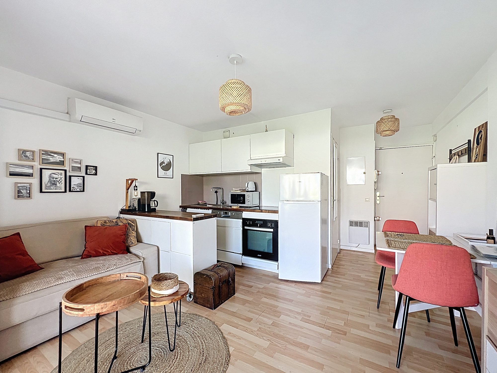 Comprenant : Coin cuisine aménagé, équipé ouvert sur la pièce de vie donnant sur la terrasse , une chambre, salle d'eau avec WC.