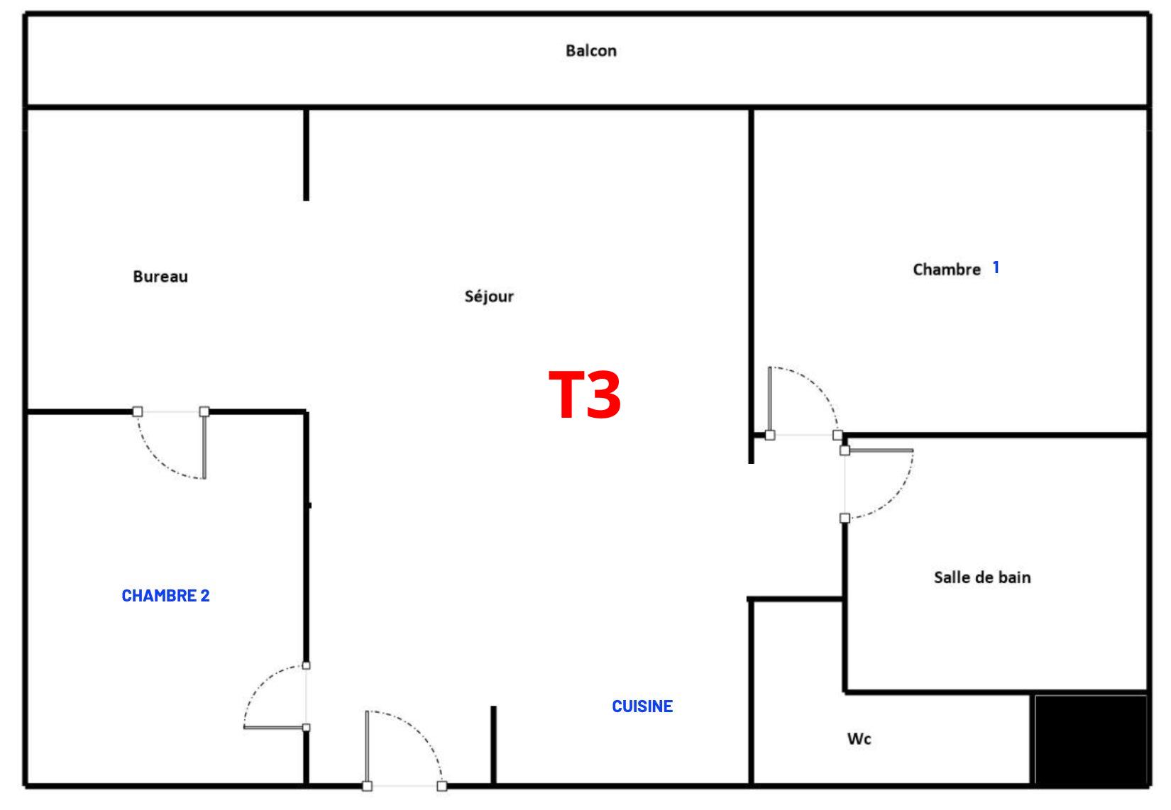Une configuration T3 est possible (voir plan)