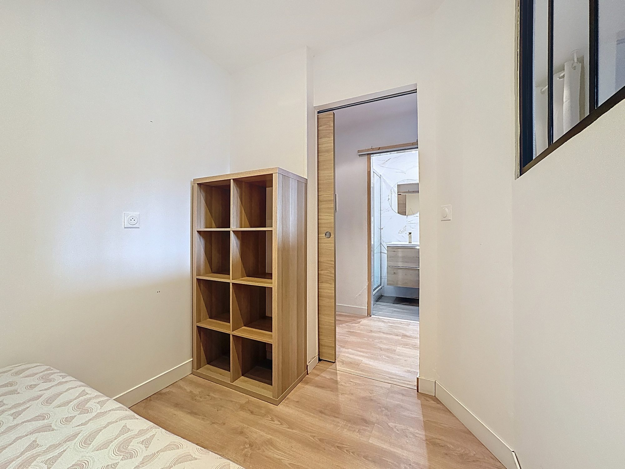 Coin nuit séparé par verrière, salle d’eau avec WC, volumes optimisés, aucun travaux à prévoir.
