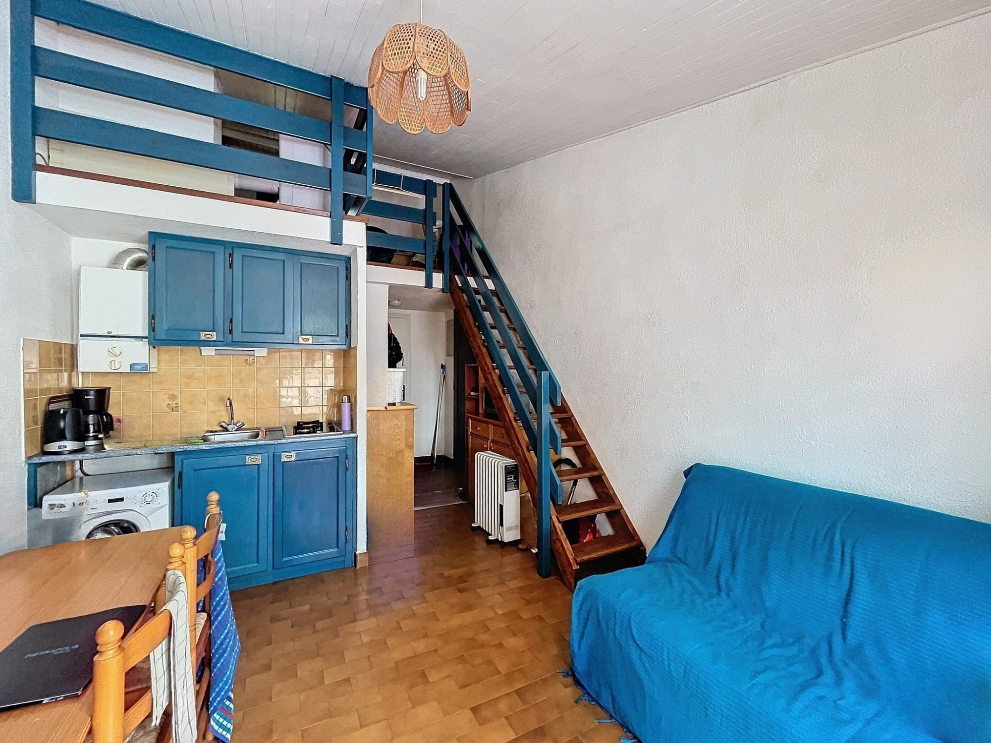 Comprenant : cuisine aménagée équipée, séjour donnant sur la terrasse , 1 mezzanine haute, 1 cabine, 1 salle d'eau et 1 WC indépendant.