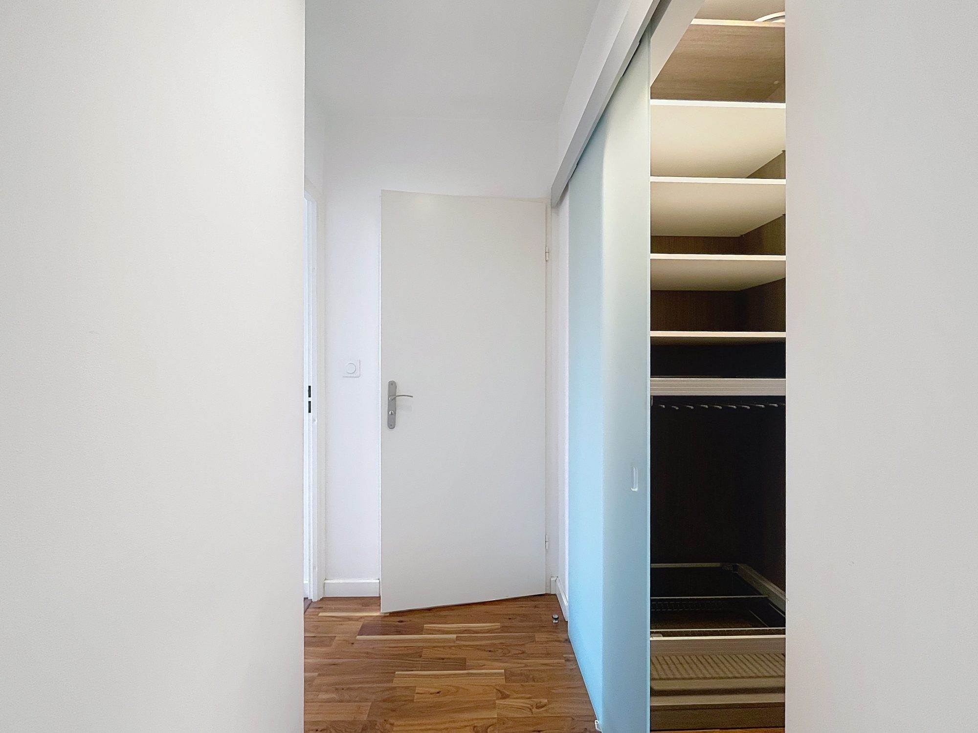 Ancien T3 transformé en T2, il faut créer une cloison pour refaire un T3 de 60,44m2 avec terrasse de 8m2 situé au dernier étage d'un immeuble de 2018.