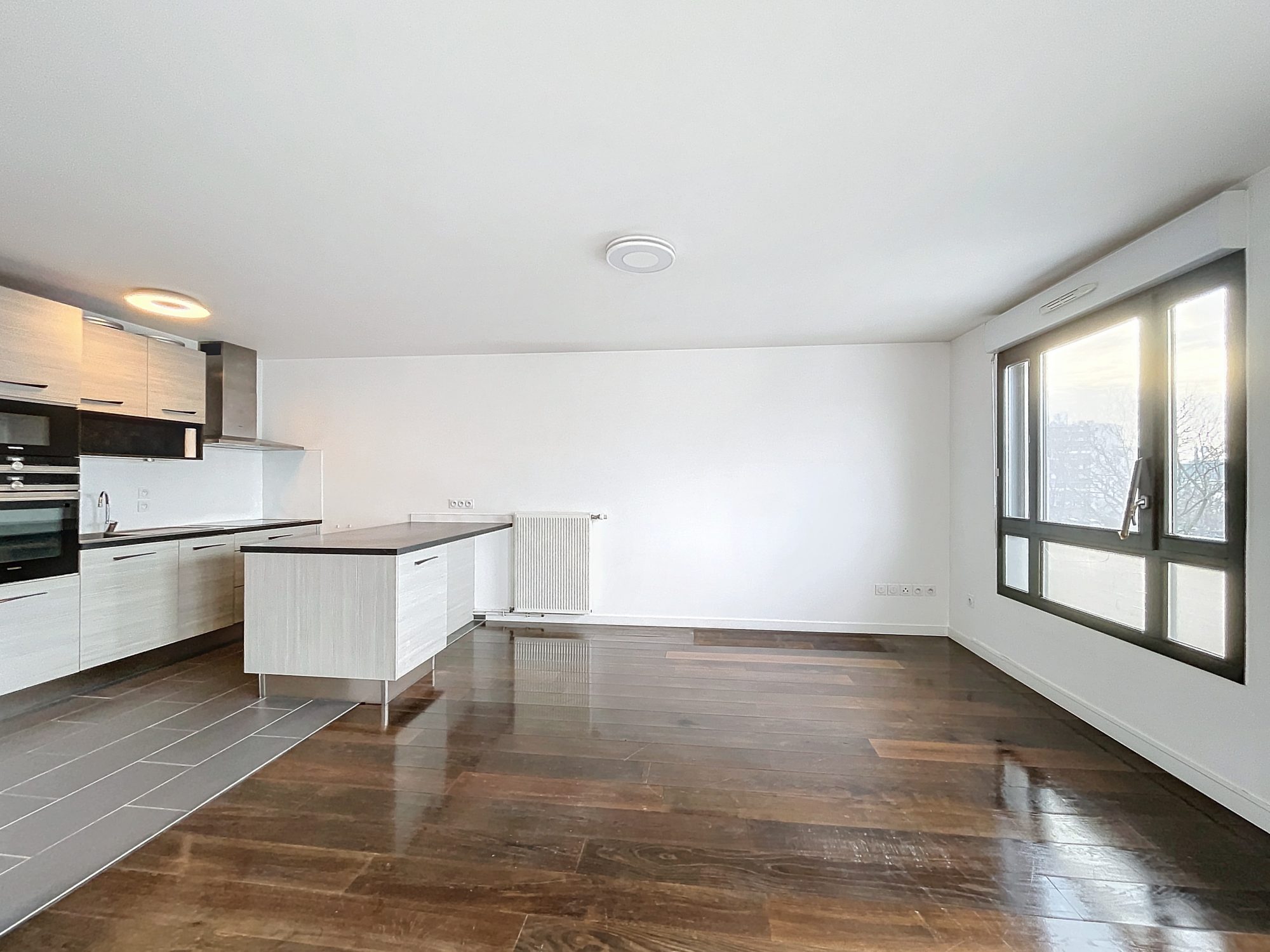 Situé entre le métro mairie d'Aubervilliers Ligne 12 et Aubervilliers Pantin ligne 7, proche de tous commerces et écoles, cet appartement se situe au dernier étage d'une copropriété de 2018.