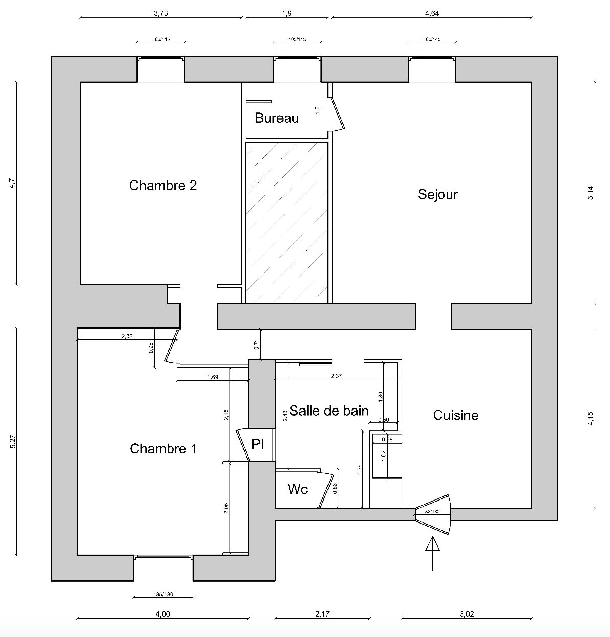- Bureau: 3 m²
