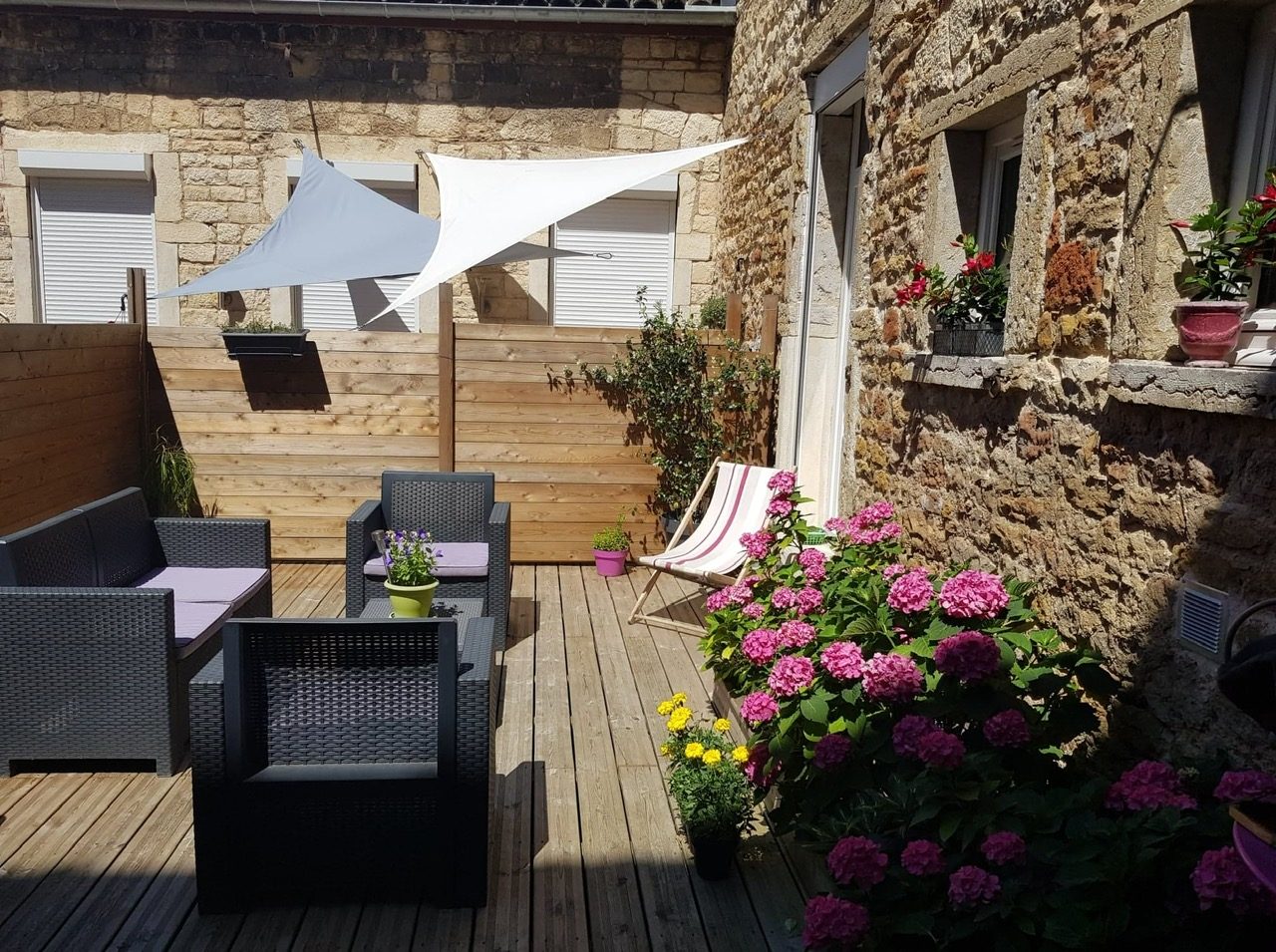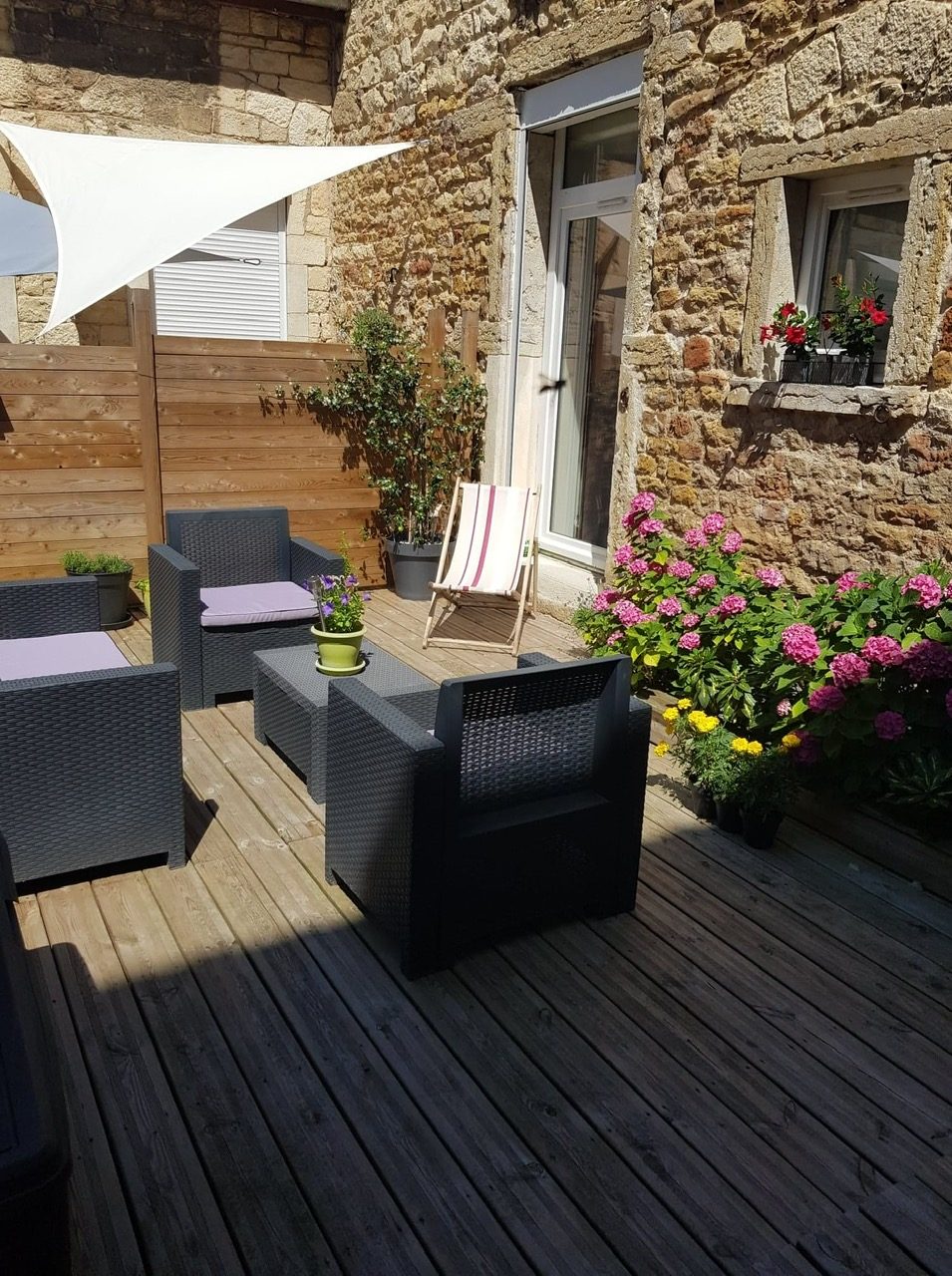 Dans une bâtisse ancienne en pierres dorées, après le passage de la porte cochère d'entrée, rejoignez cet appartement en RDC avec terrasse bois de 40m2, totalement close, parfaite pour les déjeuners entre amis mais aussi farniente au soleil