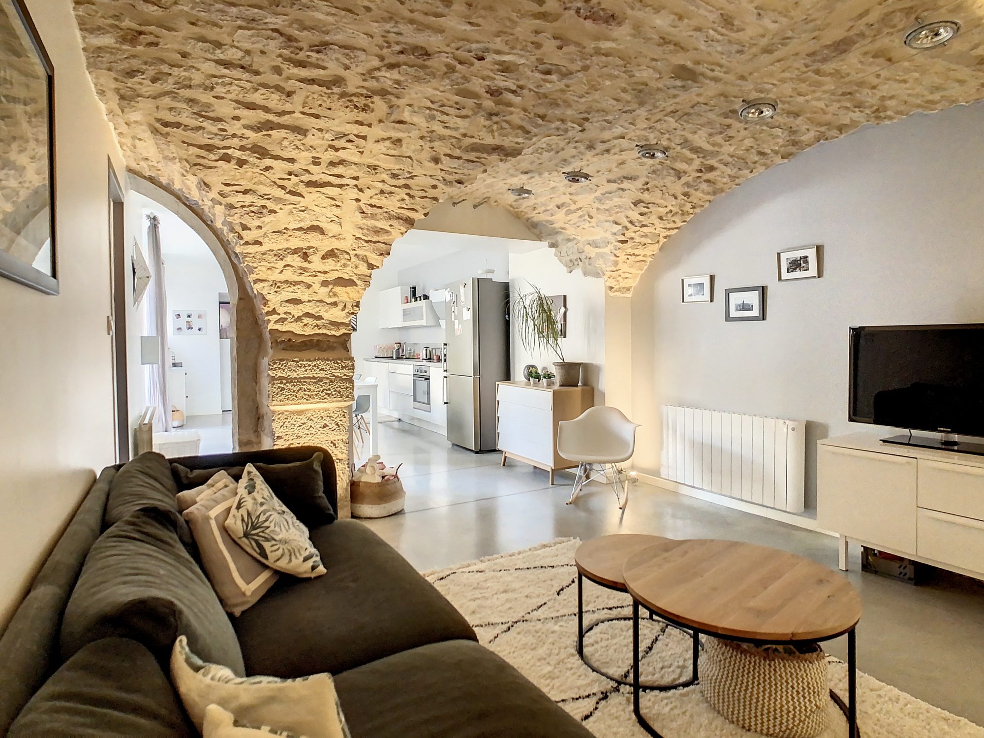 - Salon au plafond en pierre voutée donne un charme incontestable à l'ensemble