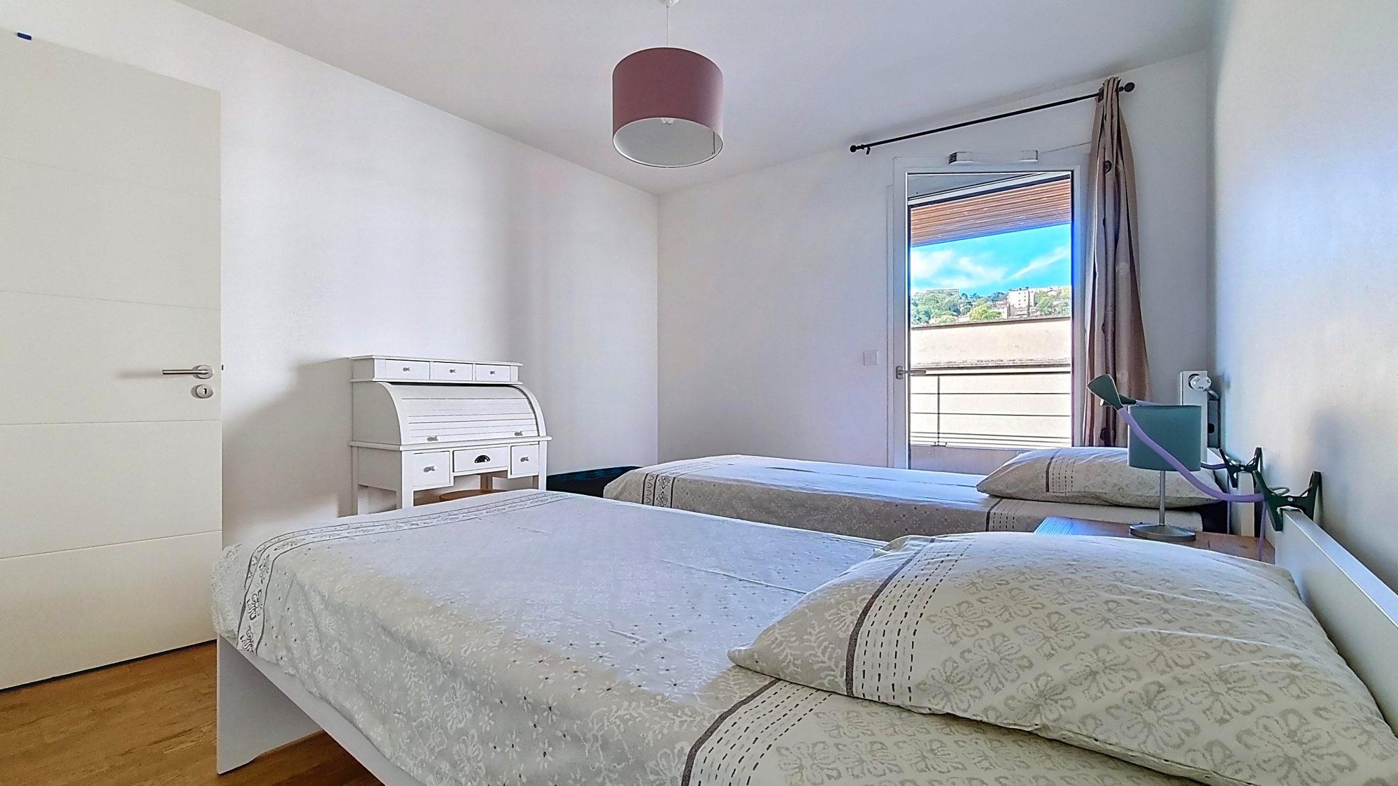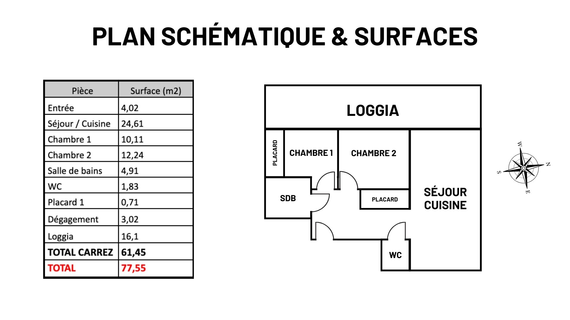 Dans un bâtiment récent de 2017, la surface totale est de 61,45m² Carrez comprenant un séjour avec cuisine ouverte de 25m², 2 chambres, une salle de bain et des WC séparés.