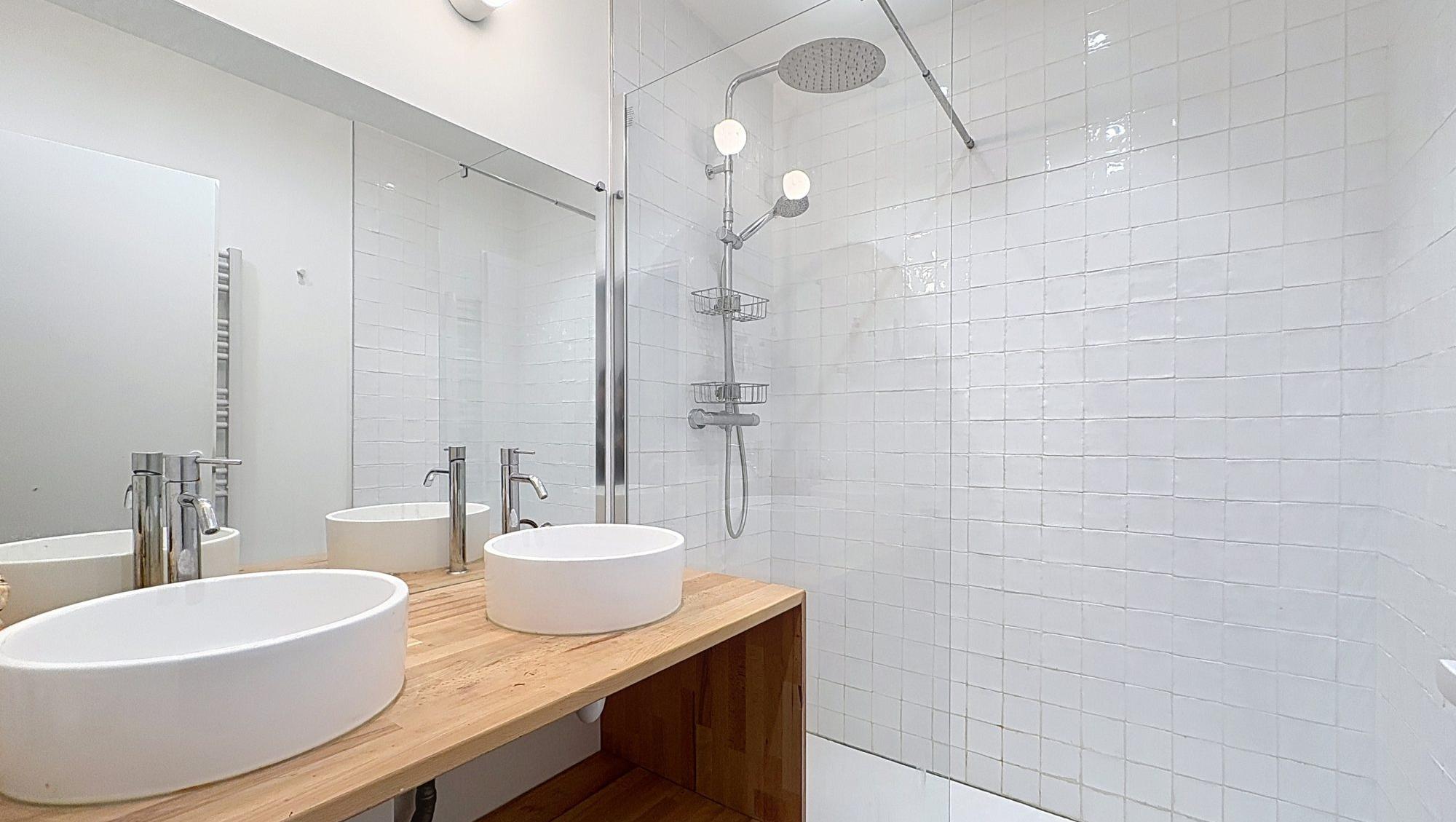L'appartement est composé d'une lumineuse pièce de vie de 37 m² avec cuisine ouverte aménagée et équipée, de 2 chambres avec chacune sa salle-de-bains privative et de grands placards, une entrée avec rangements et des wc indépendants.