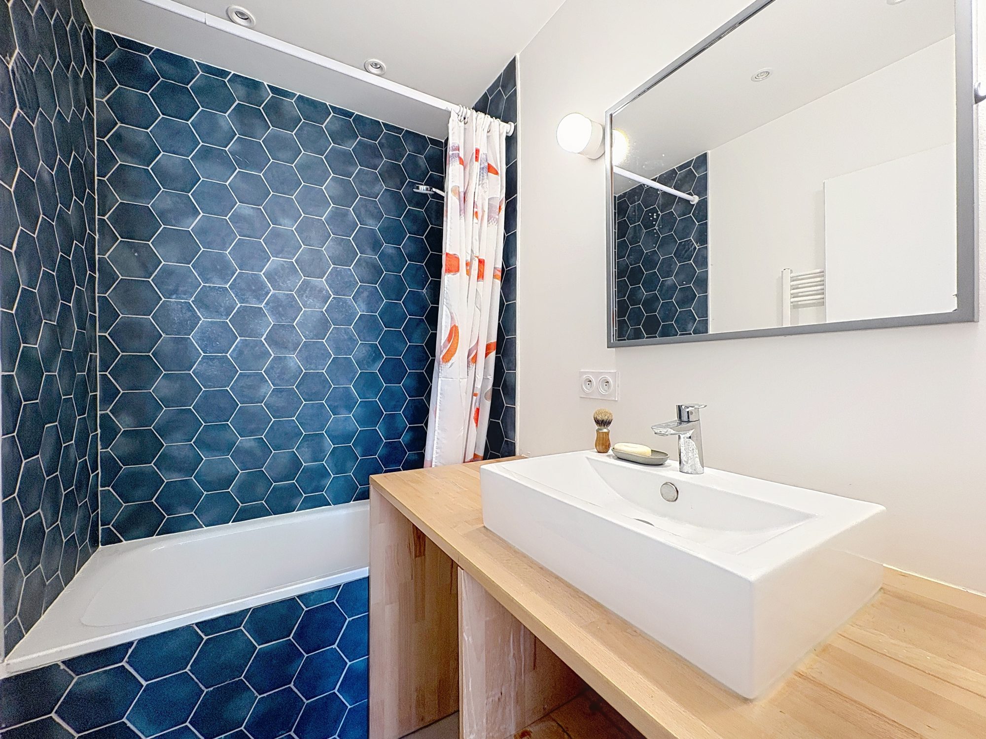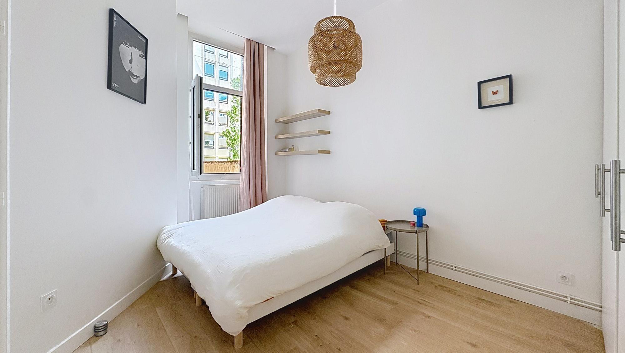 Ce T3 traversant, rénové récemment avec goût, et aux espaces bien optimisés a su conserver tout le charme de l'ancien : 3 mètres de hauteur sous plafond, grandes fenêtres laissant entrer la lumière, parquet massif...