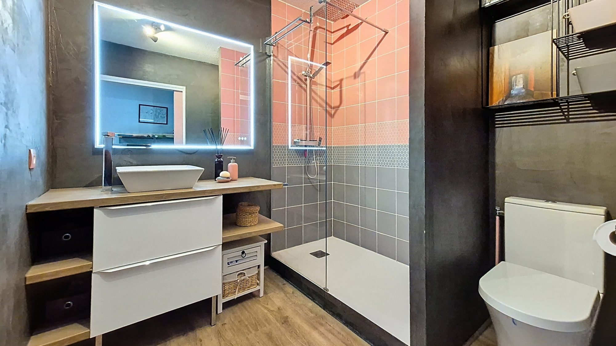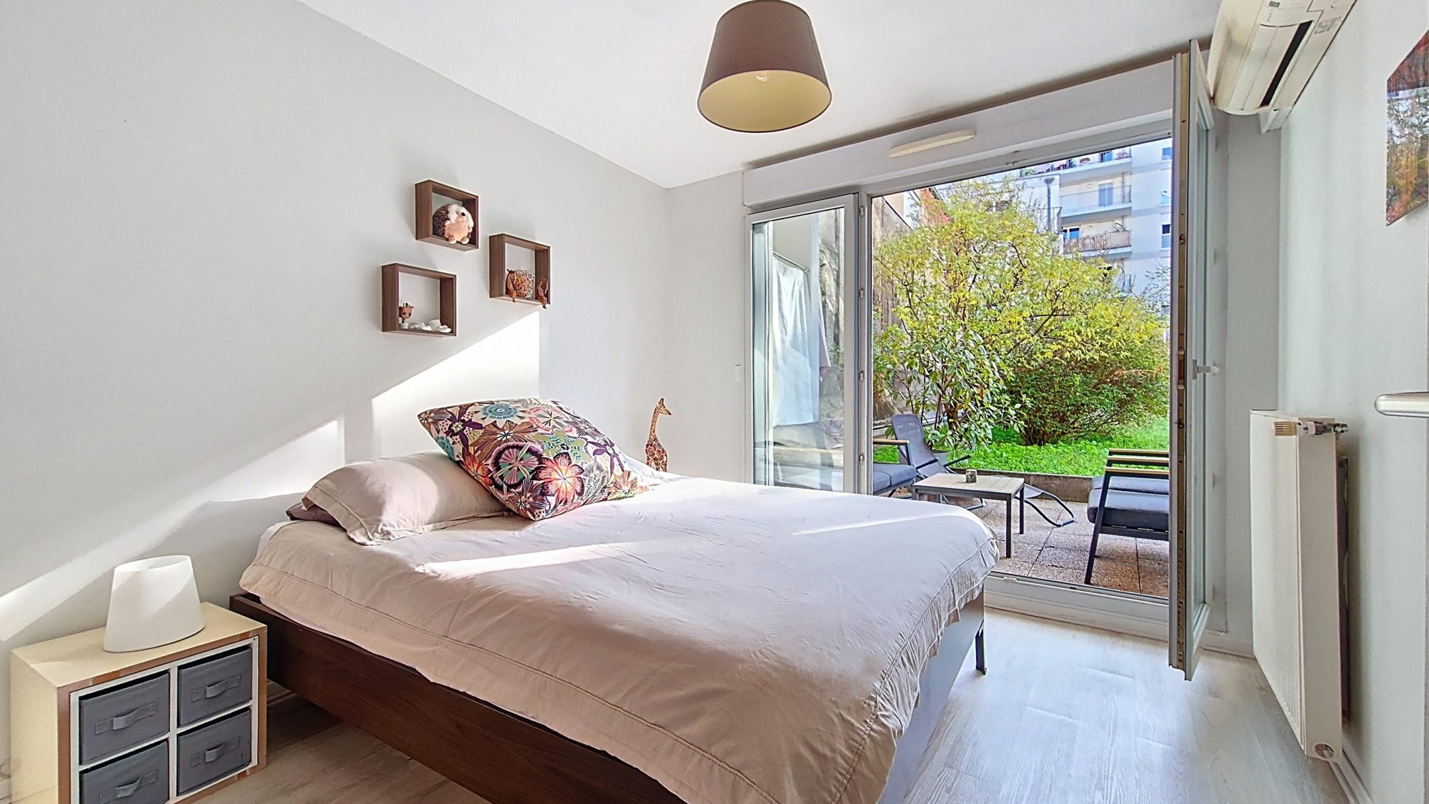 Côté nuit, deux chambres lumineuses complètent l’ensemble, dont l’une dispose d’un grand dressing. Salle d’eau moderne, buanderie fonctionnelle et nombreux rangements optimisent le confort au quotidien.