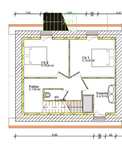 La future copropriété ne sera composée que 3 lots d'habitation, et pour ce lot, mitoyenneté uniquement sur un coté, avec séparation en gros de mur porteur