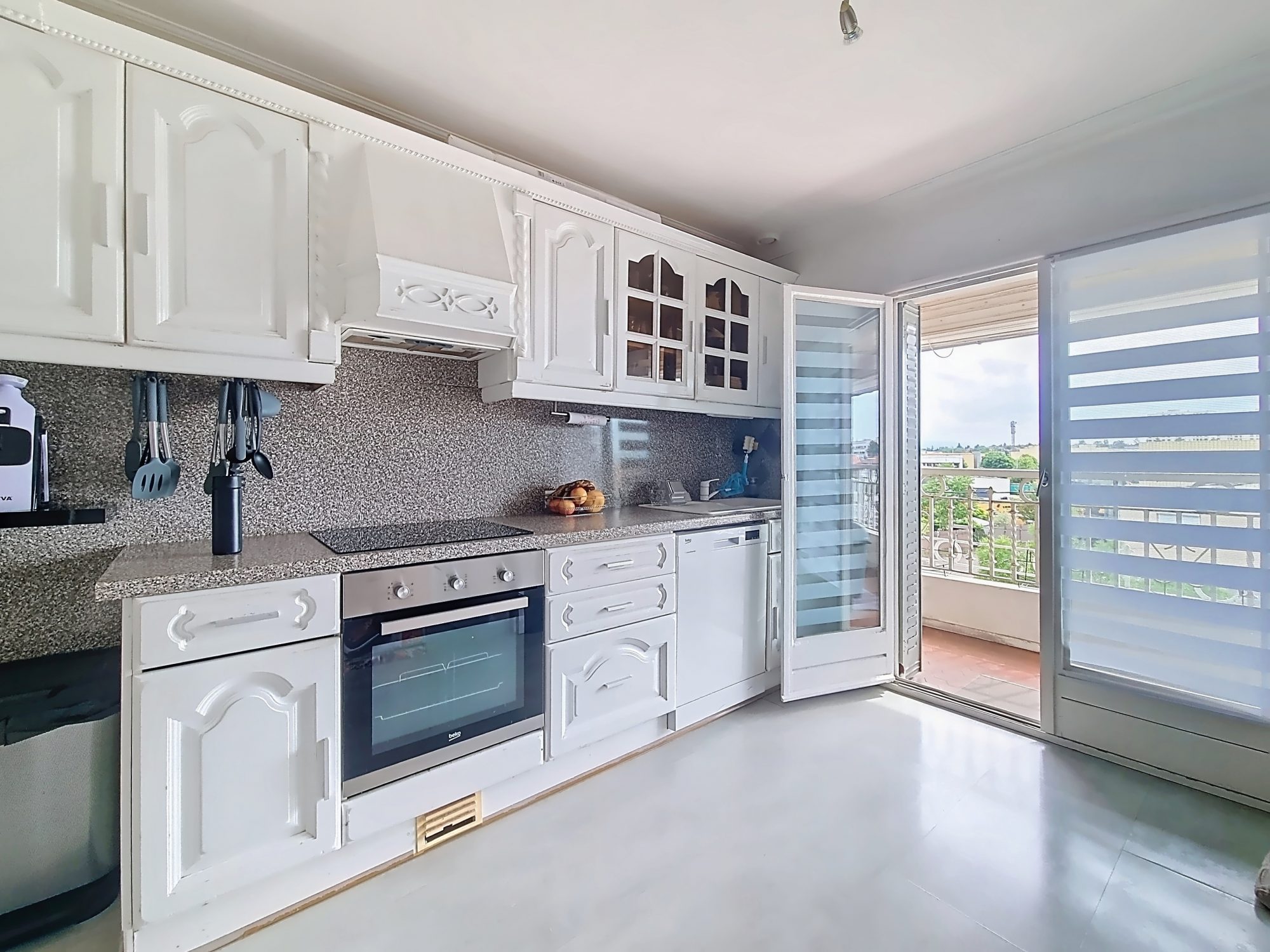 En très bon état, vous apprécierez la pièce de vie spacieuse de plus de 27 m² regroupant le salon et la salle à manger donnant accès direct au balcon et sa vue dégagée.