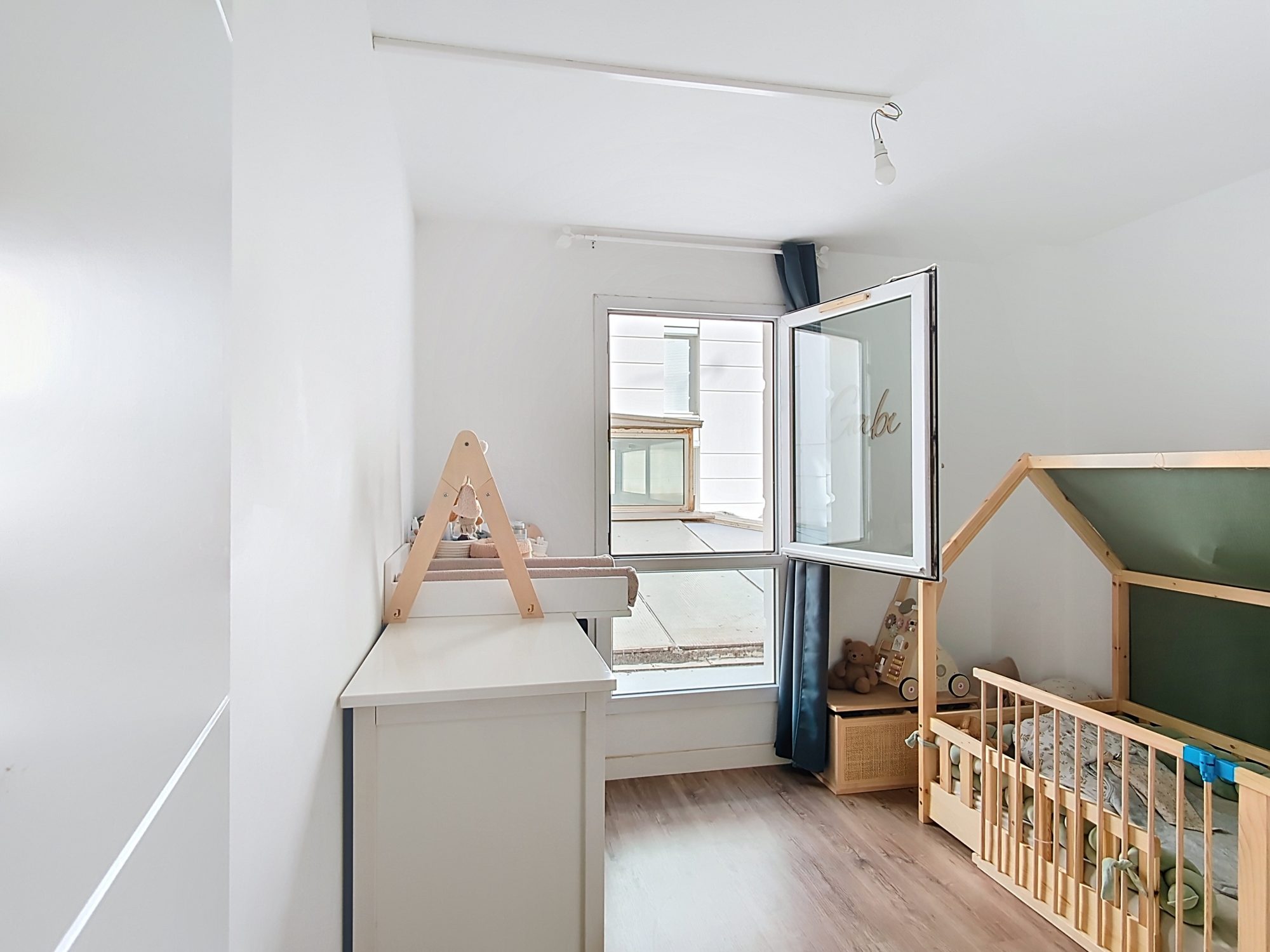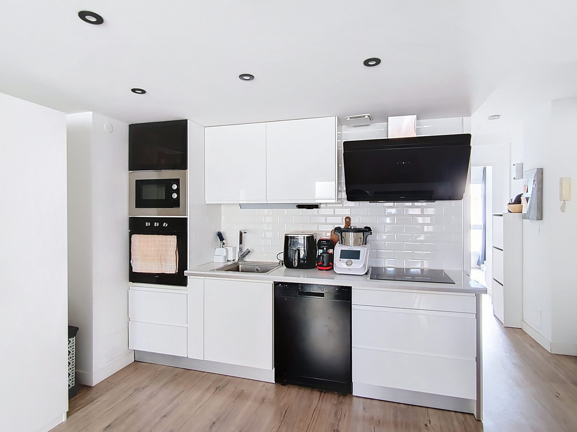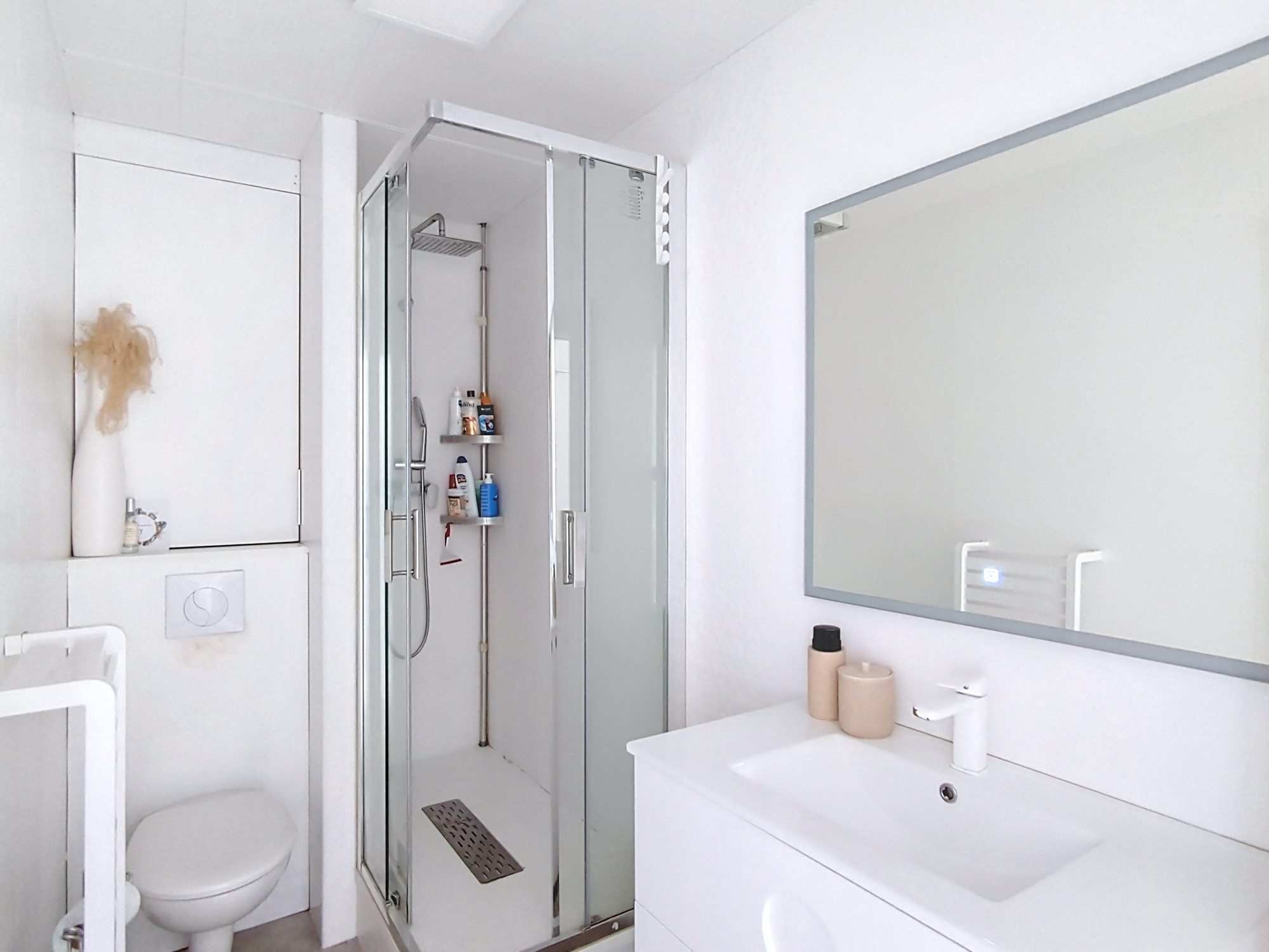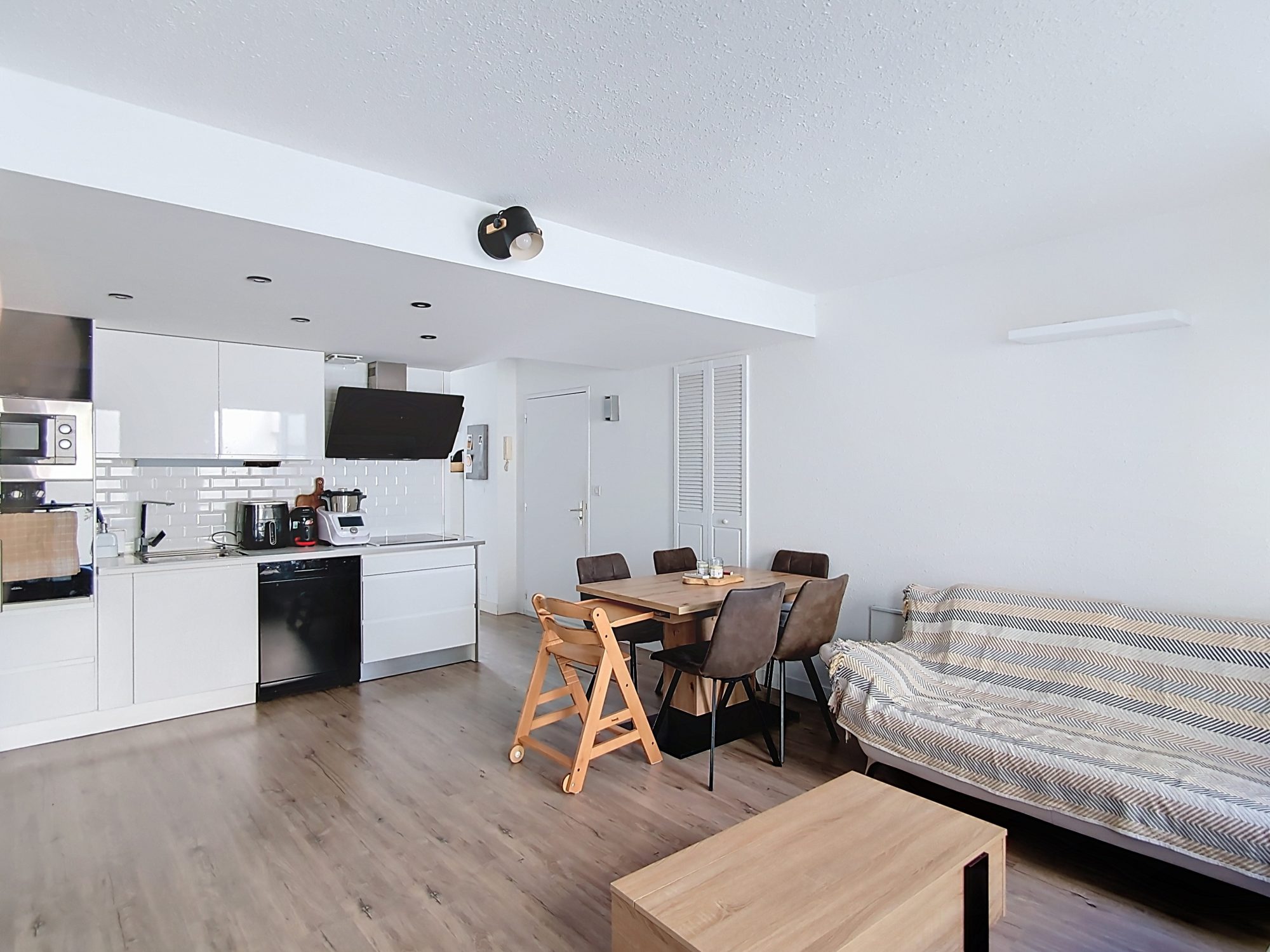 Comprenant: une cuisine aménagée équipée ouverte sur la pièce de vie, deux chambres dont une avec placard, une salle d'eau avec WC, traversant et lumineux.
