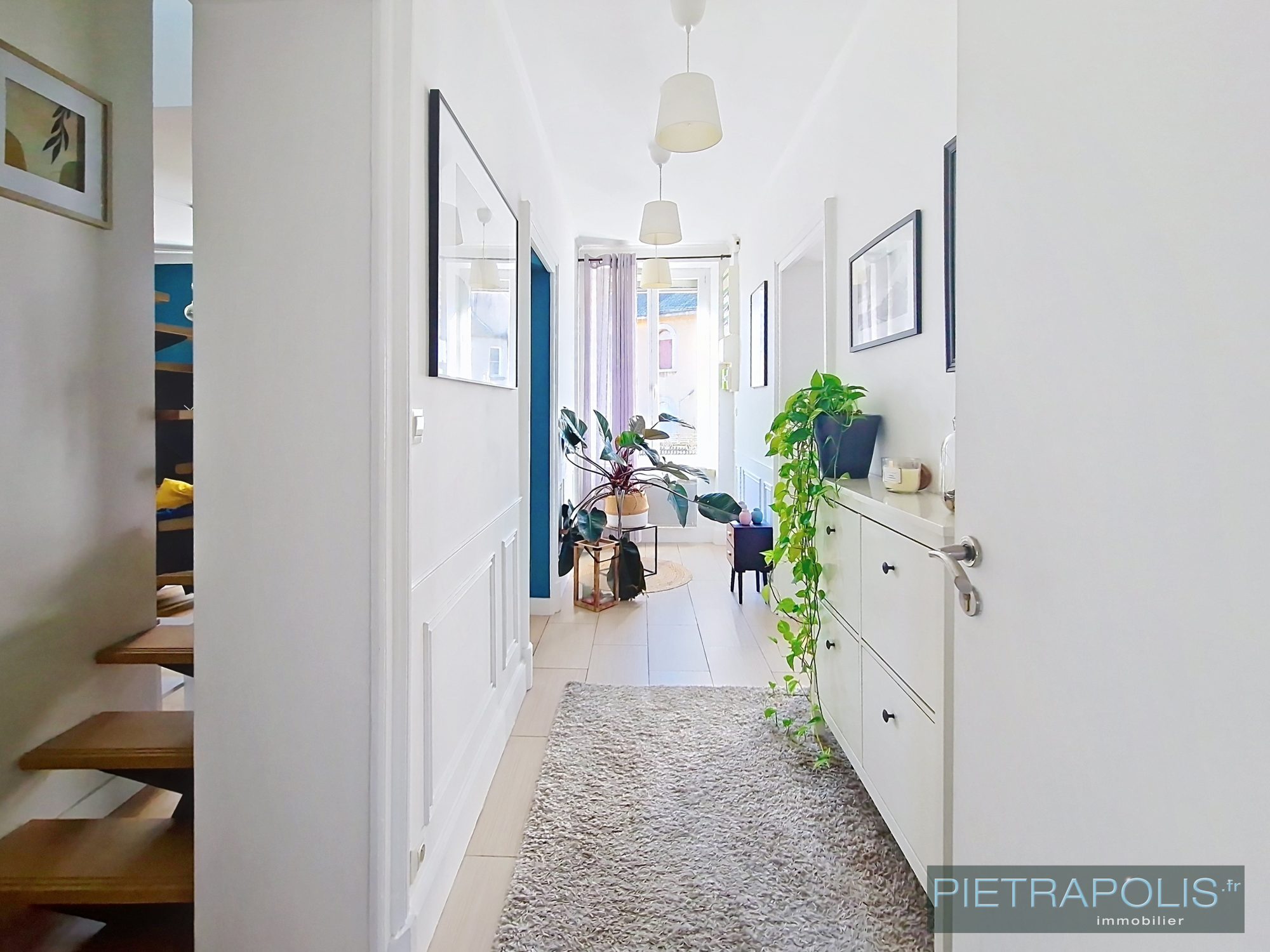 Tarare, Appartement en duplex d'environ 80m² au 2e étage/2 d’une petite copropriété comprenant une entrée, une cuisine ouverte sur salon-séjour, 2 grandes chambres, une salle de bains, un wc.