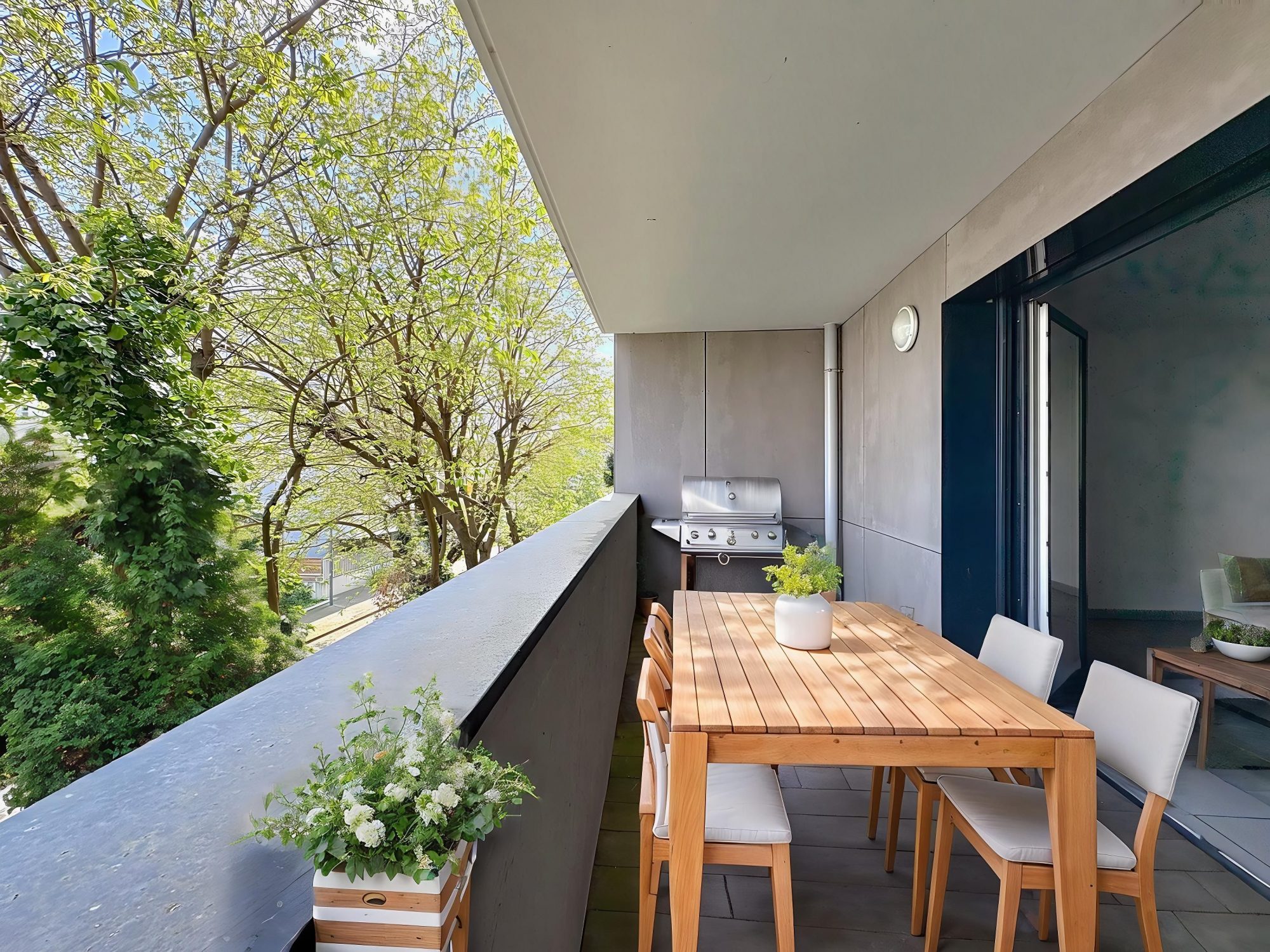 Au sein d'une résidence récente (2013), ce bel appartement offre un cadre de vie paisible et confortable. La pièce de vie, d'environ 27 m², avec sa cuisine américaine, s'ouvre sur une loggia de 8 m² sans aucun vis-à-vis. L'espace nuit, composé de 2 chambres, une salle-de-bains et des wc indépendants, est au calme absolu.