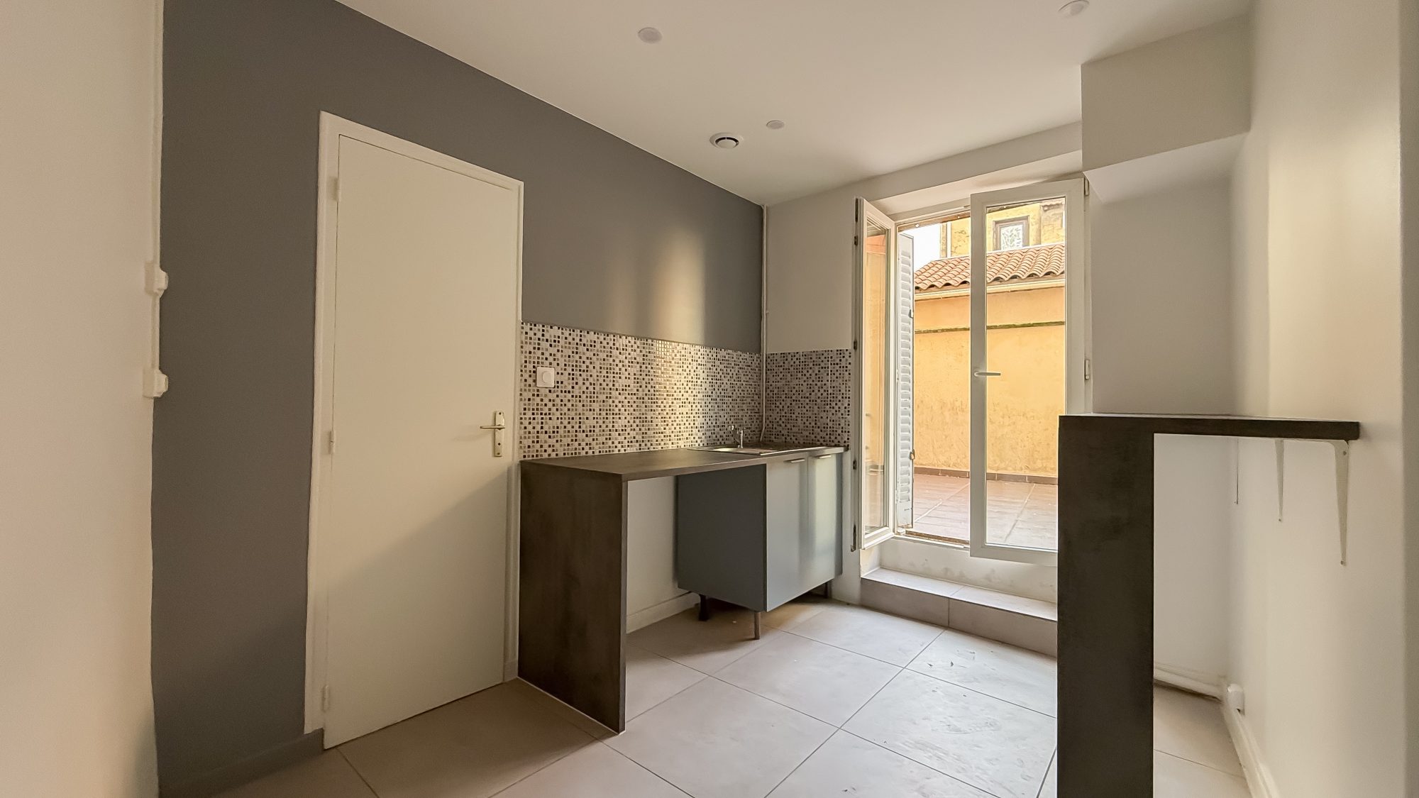 * Cuisine partiellement meublée avec accès sur une jolie terrasse sans vis à vis et au calme absolu.