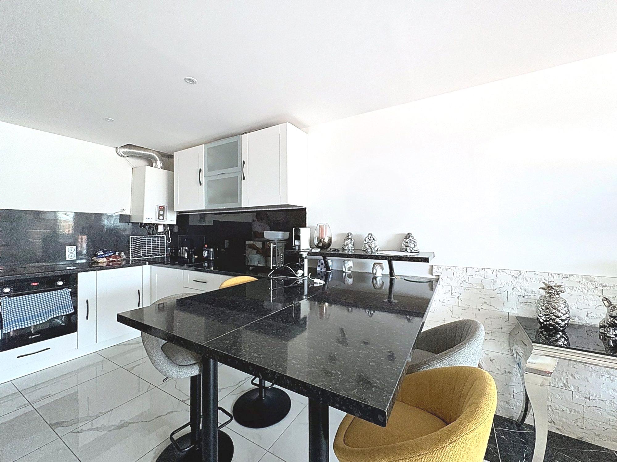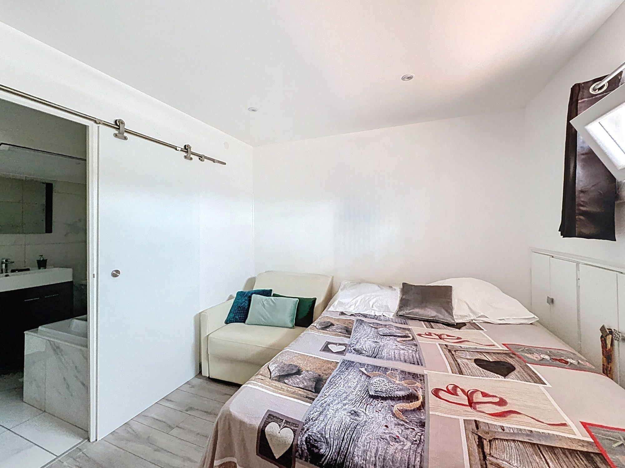 Au niveau principal : Séjour avec cuisine américaine aménagée équipée, chambre, salle de bain avec WC