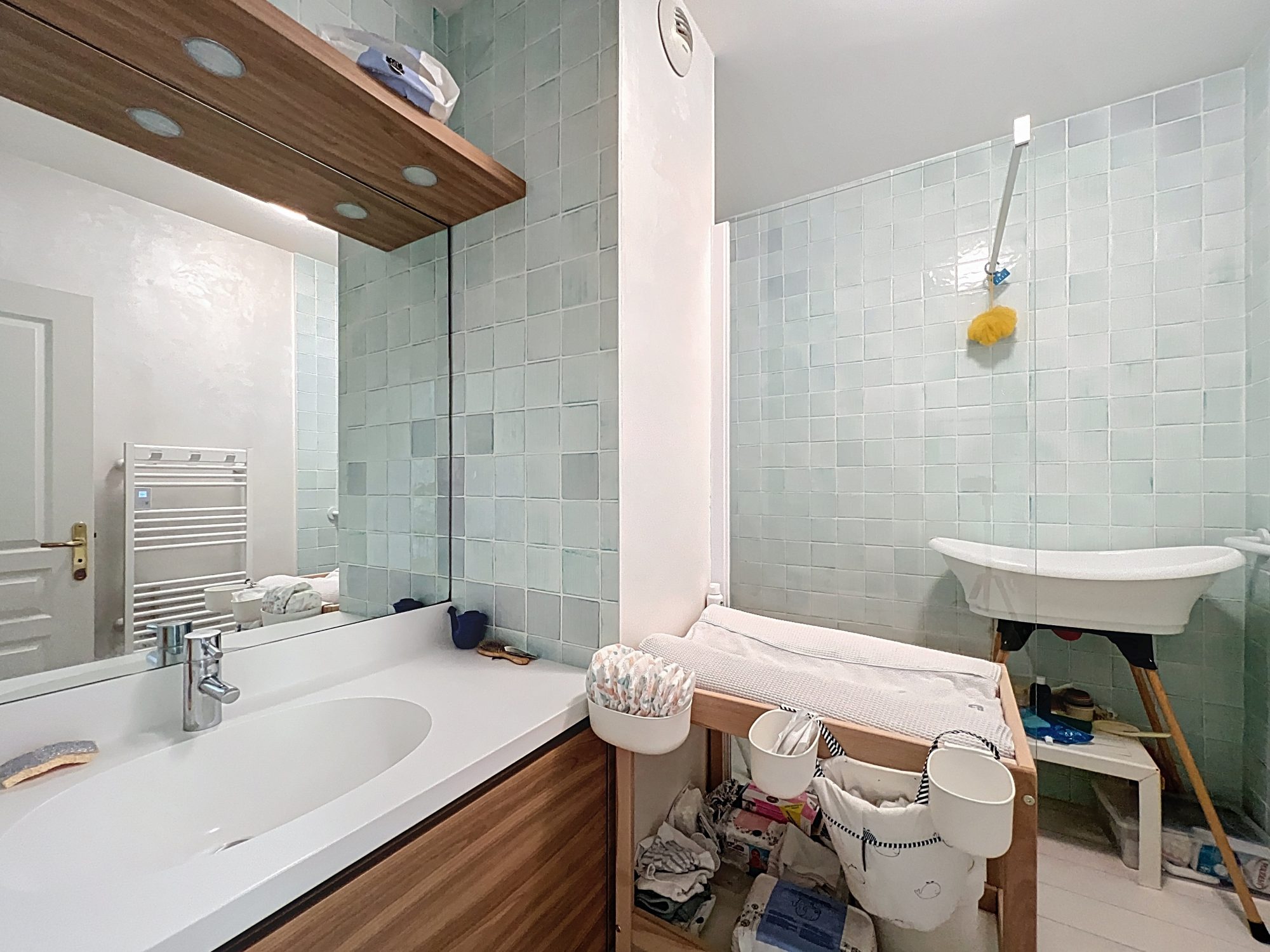 L'appartement est lumineux, il se compose d'une entrée, un salon séjour double, une cuisine, 3 chambres, 2 salles d'eau, un dégagement, 2 toilettes