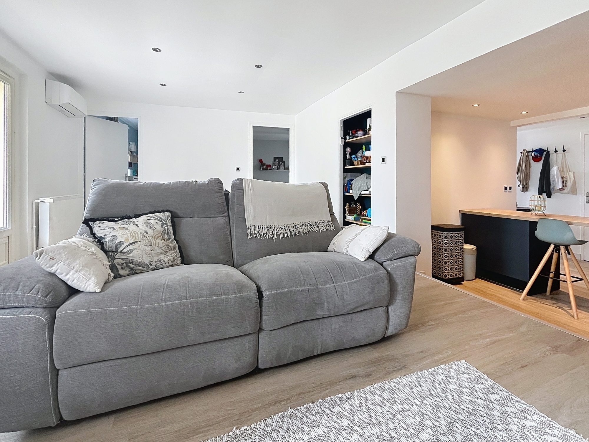 Technique : Chauffage gaz de ville, clim réversible, interphone / visiophone, PVC double vitrage , volets roulants, fibre, VMC simple flux.