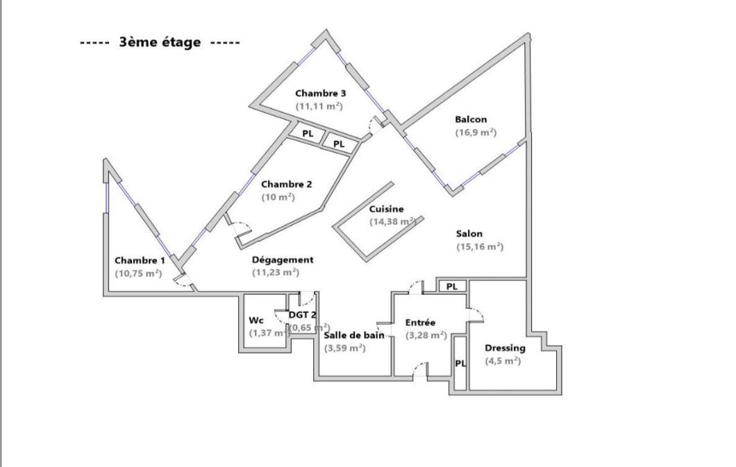 - Chambre 3: 11.11 m²