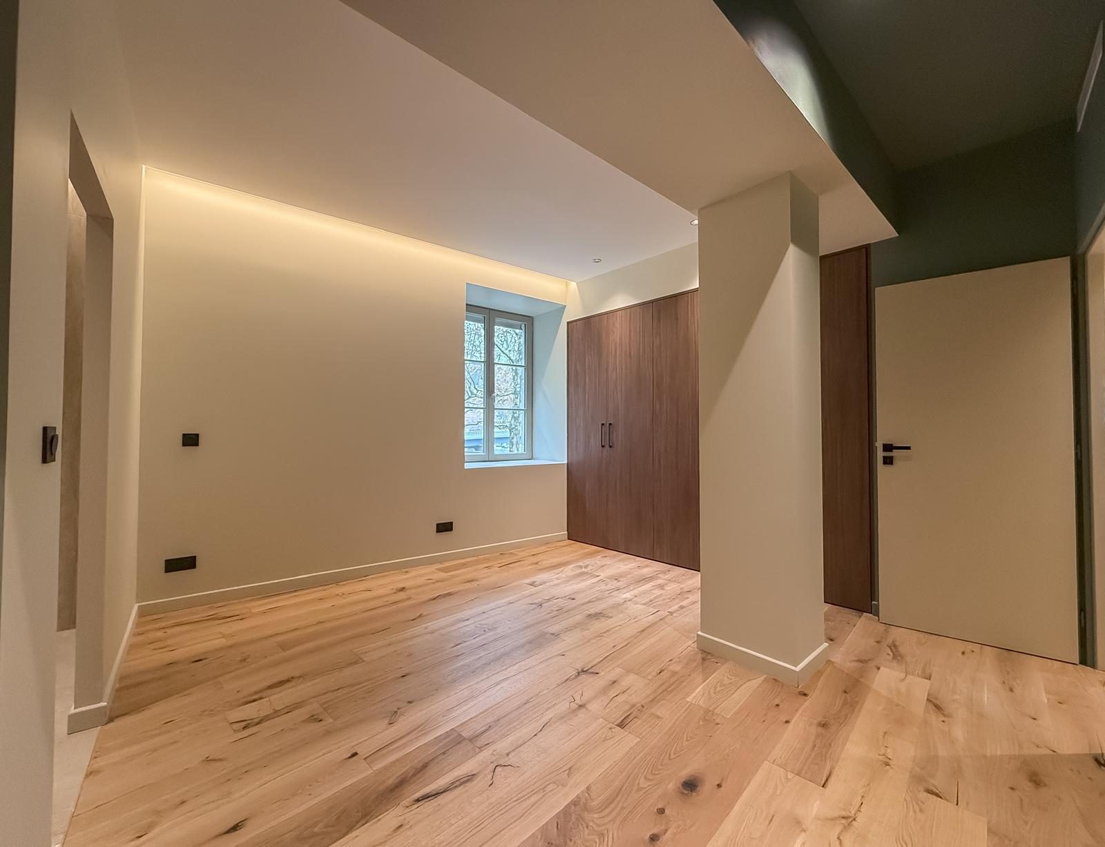 Le parquet chêne , les moulures et la hauteur sous plafond apportent un cachet dans cet appartement contemporain tout rénové.