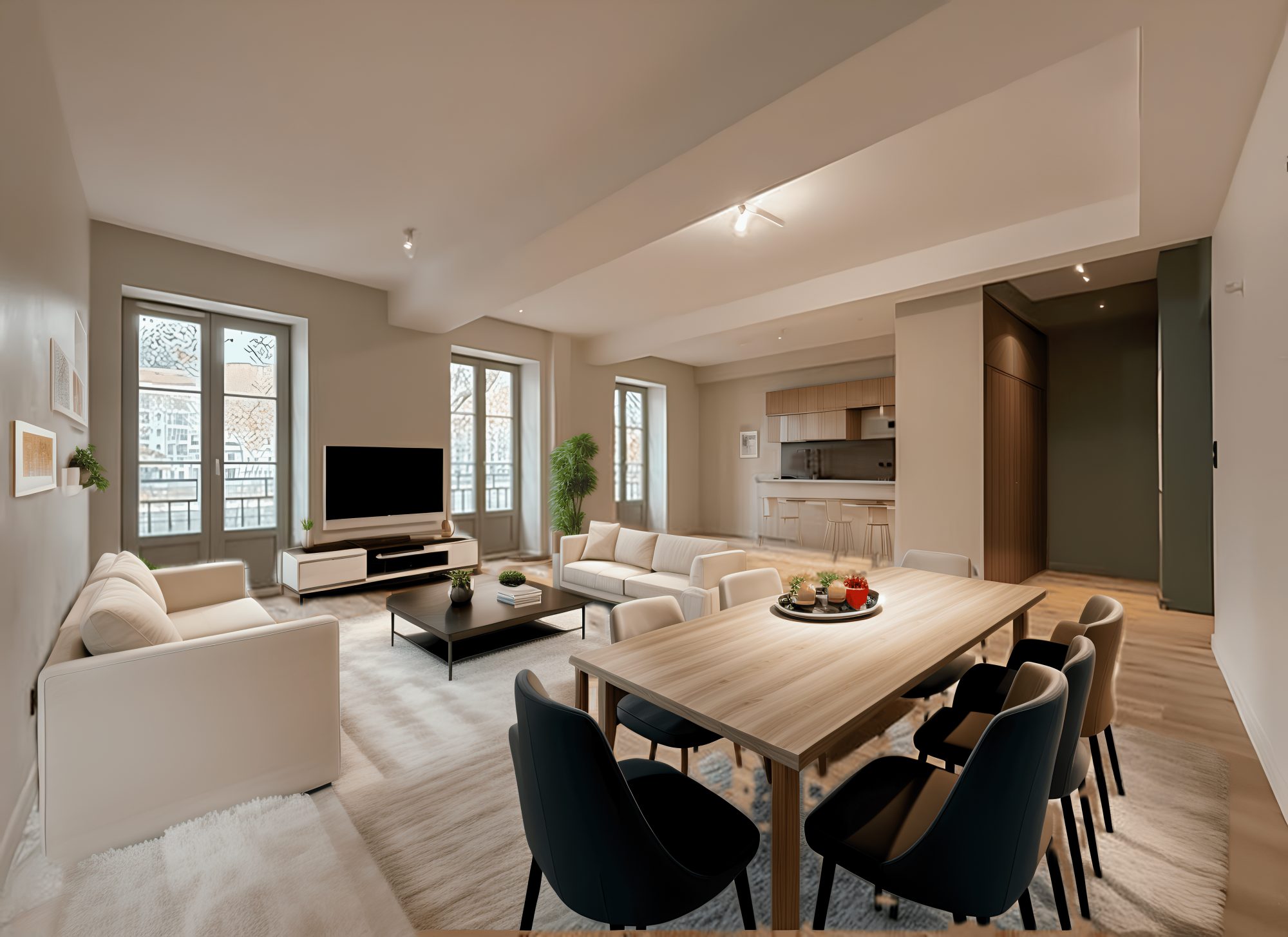 Dans un bâtiment du XVIII -ème siècle rénové avec goût : toiture, façade, parties communes avec pierre de travertin , double vitrage renforcé , pompe à chaleur ; cet appartement vous séduira avec sa grande pièce de vie baignée de lumière exposée Ouest donnant sur les quais de Saône sans vis à vis , sa cuisine ouverte aménagée et équipée faite sur mesure, ses 2 grandes chambres avec salle d'eau chacune , sa 3 -ème chambre/ bureau et sa buanderie.