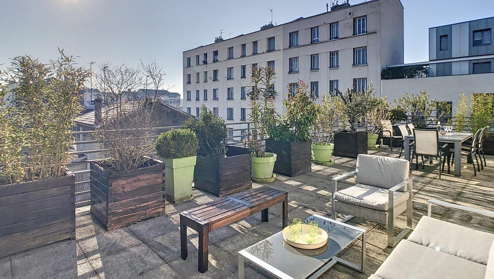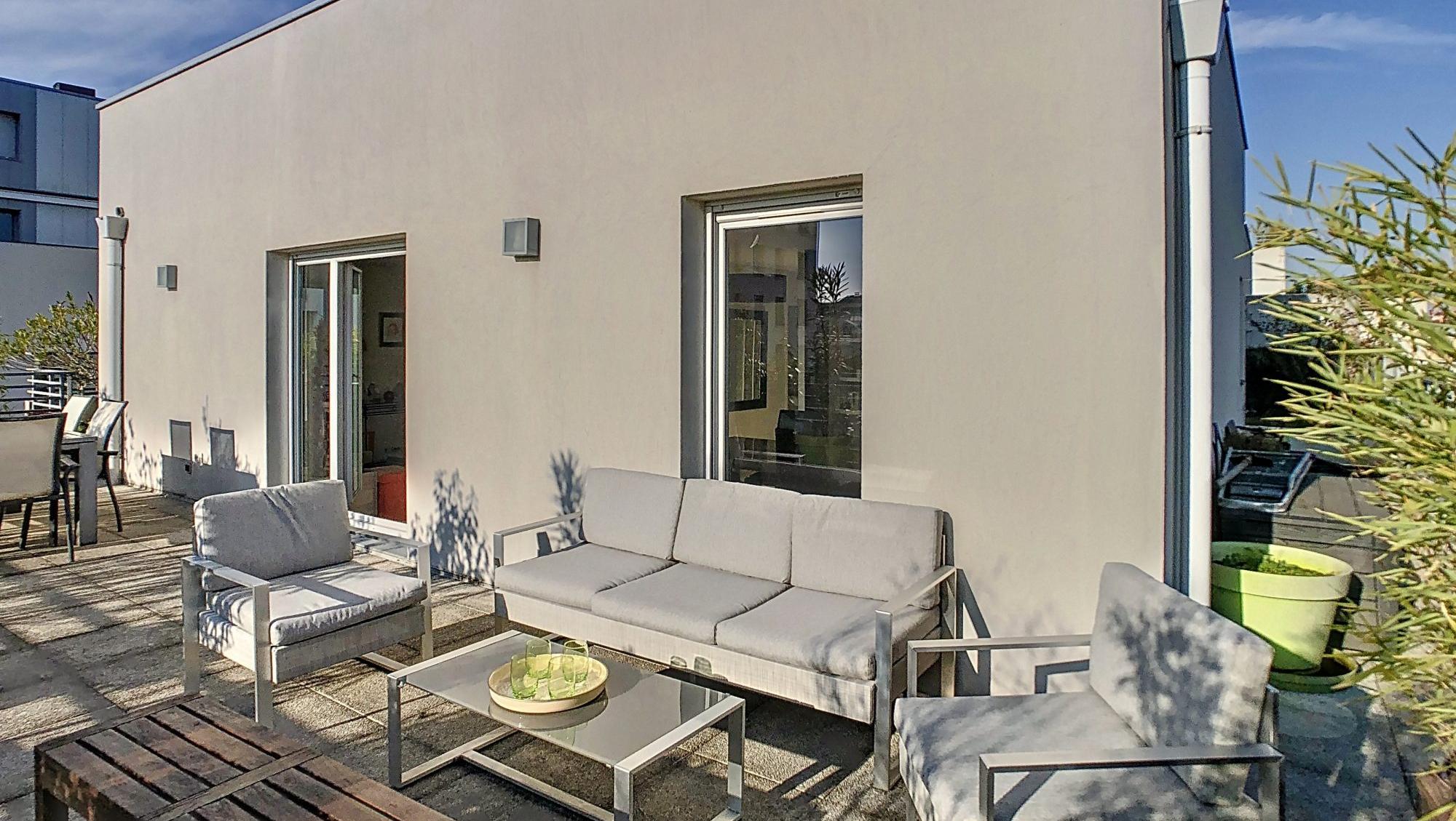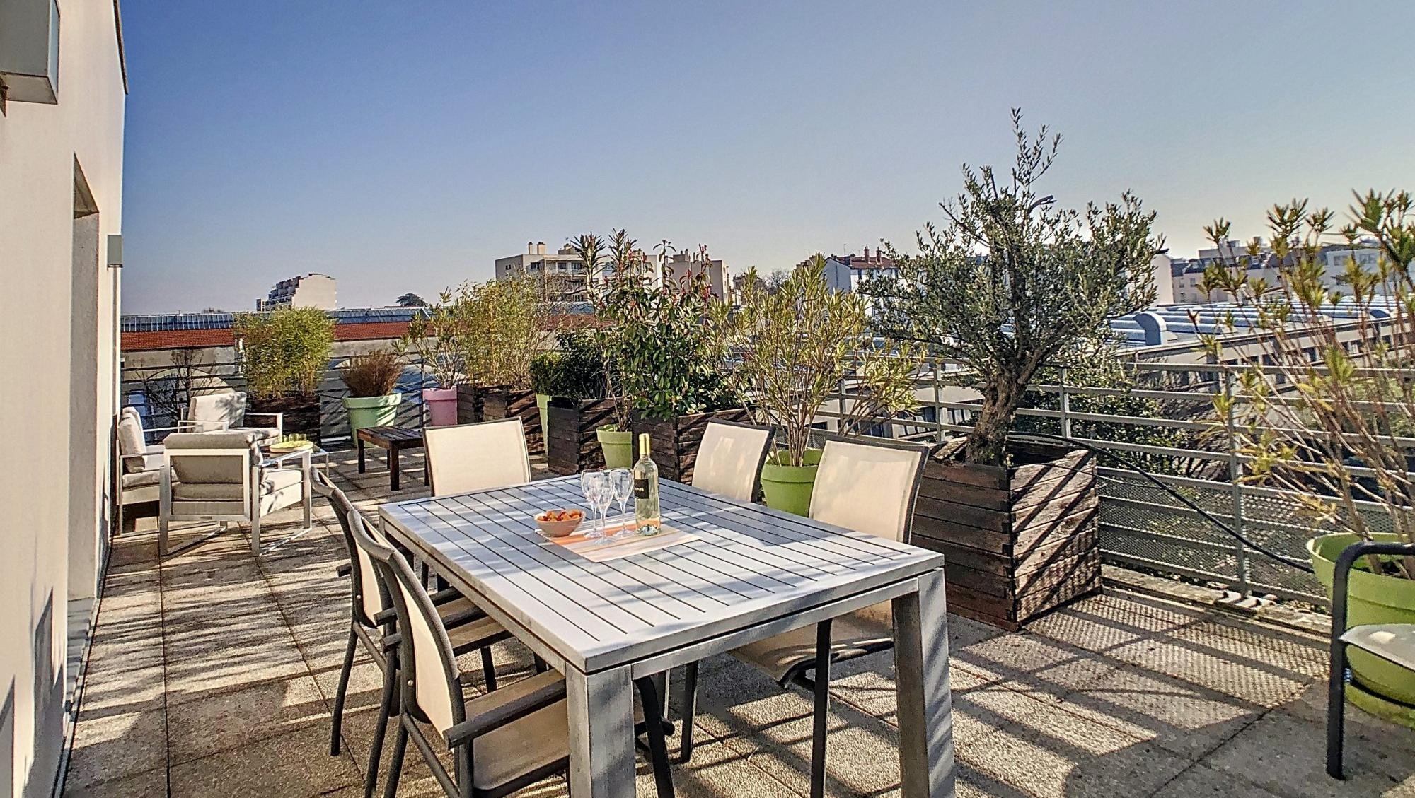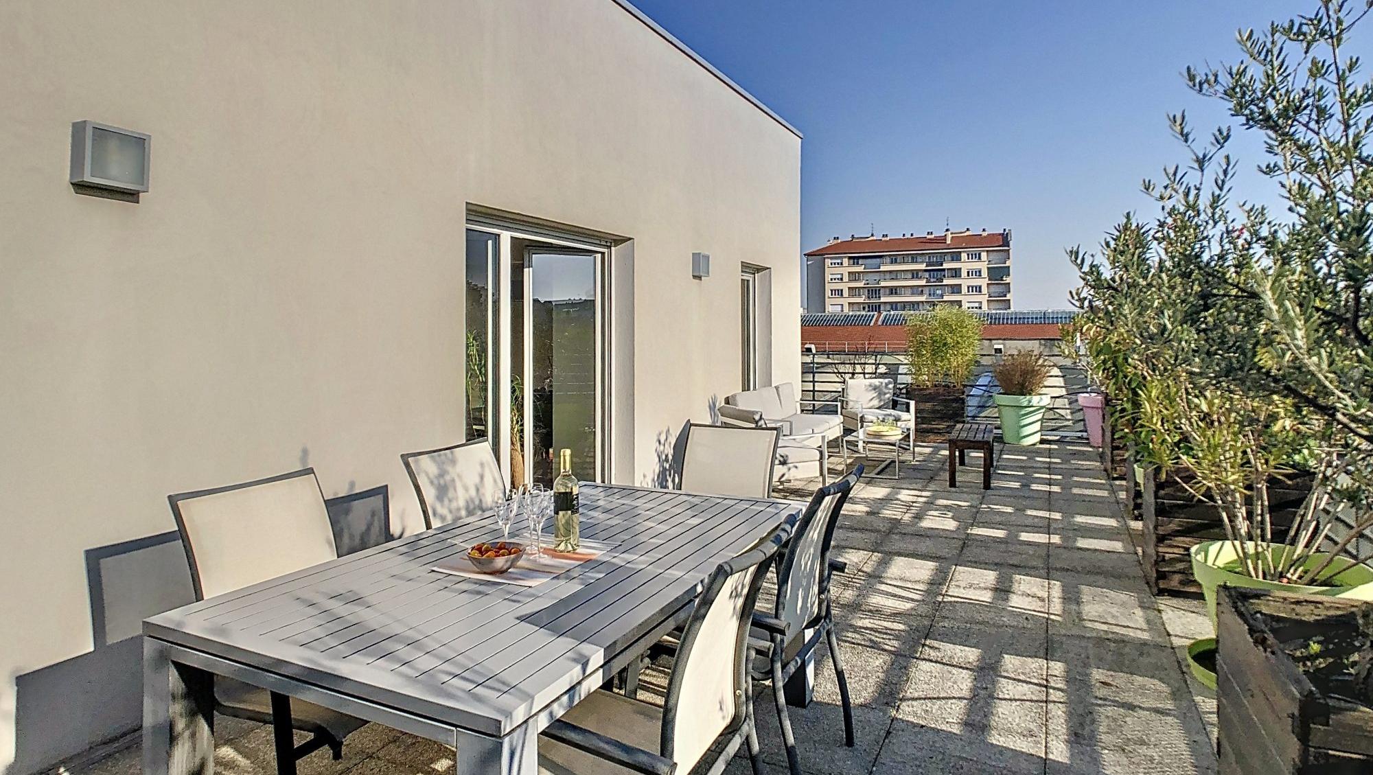 VENDU - Rare. T4 plus bureau en « toit-terrasse » de 112 m² et 130 m² de terrasses, cave et 2 garages possibles à 600 m du métro Grange Blanche (métro D).