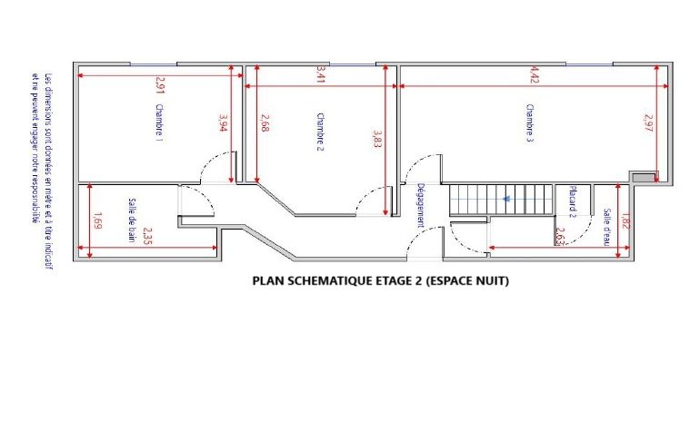 A l’étage inférieur, le coin nuit, 3 chambres, salle de bains et salle d’eau.