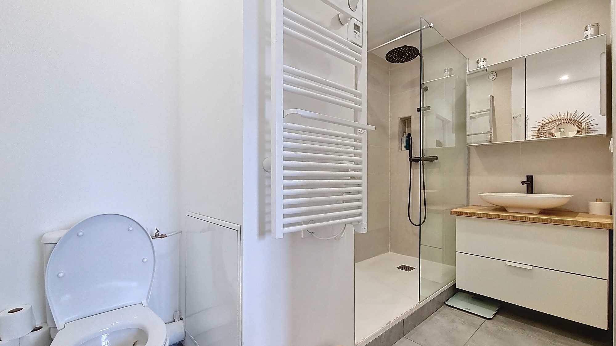 L'appartement est équipé d'une climatisation réversible, volets électriques, espace buanderie et dispose d'une excellente isolation thermique.