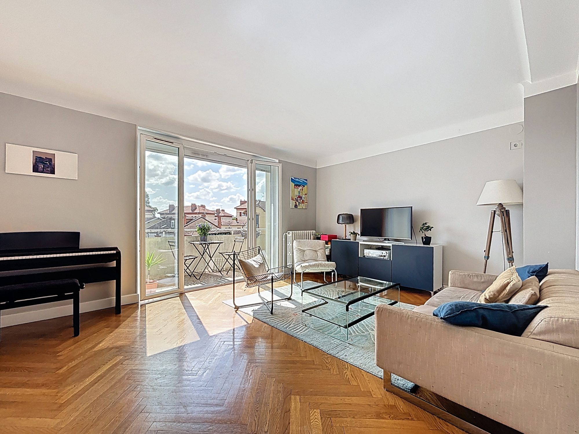 Beau 4 pièces lumineux et en très bon état de 90,02 m² situé au dernier étage d'une petite copropriété, balcon avec vue dégagée, garage dans la cour et grande cave.