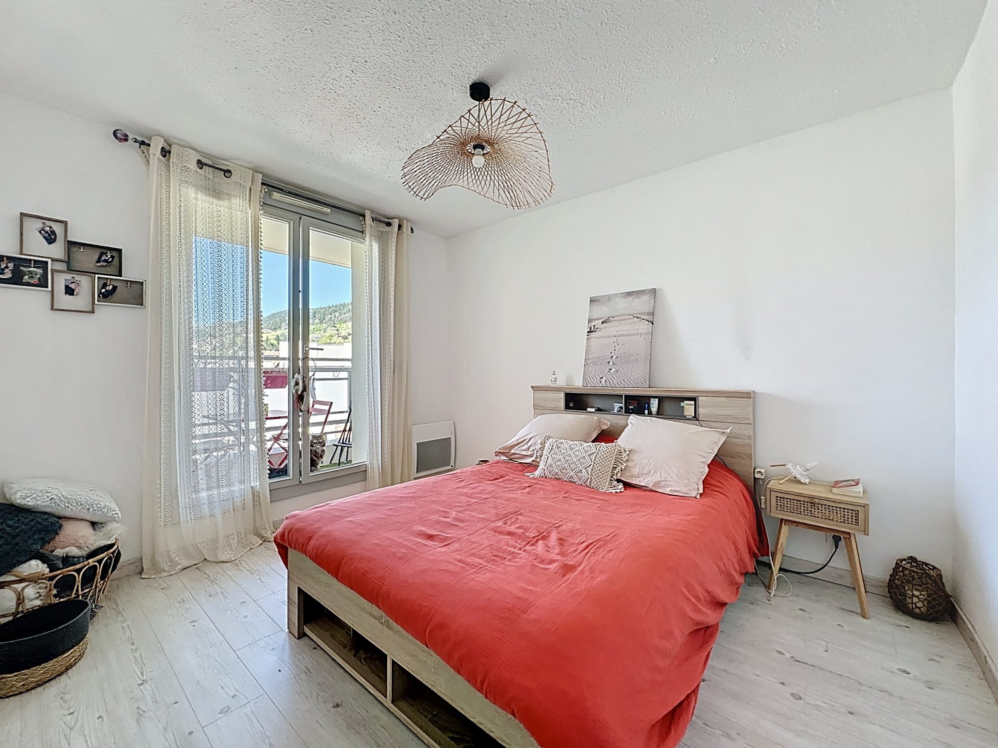Dès l'entrée, vous découvrirez une pièce de vie baignée de lumière et chaleureuse, une cuisine aménagée et entièrement équipée, ainsi qu'une chambre, tous deux donnant accès à un agréable balcon exposé plein Sud de près de 4m² - parfait pour profiter du soleil en toute tranquillité.