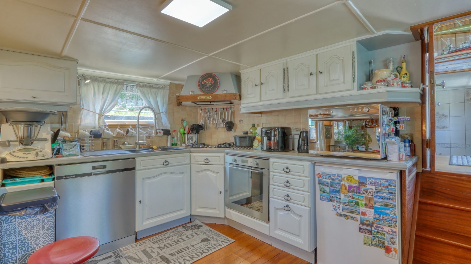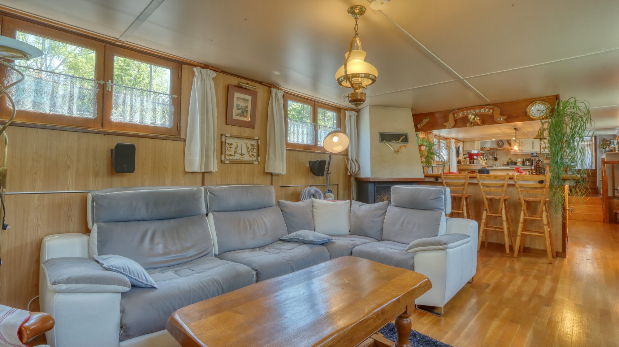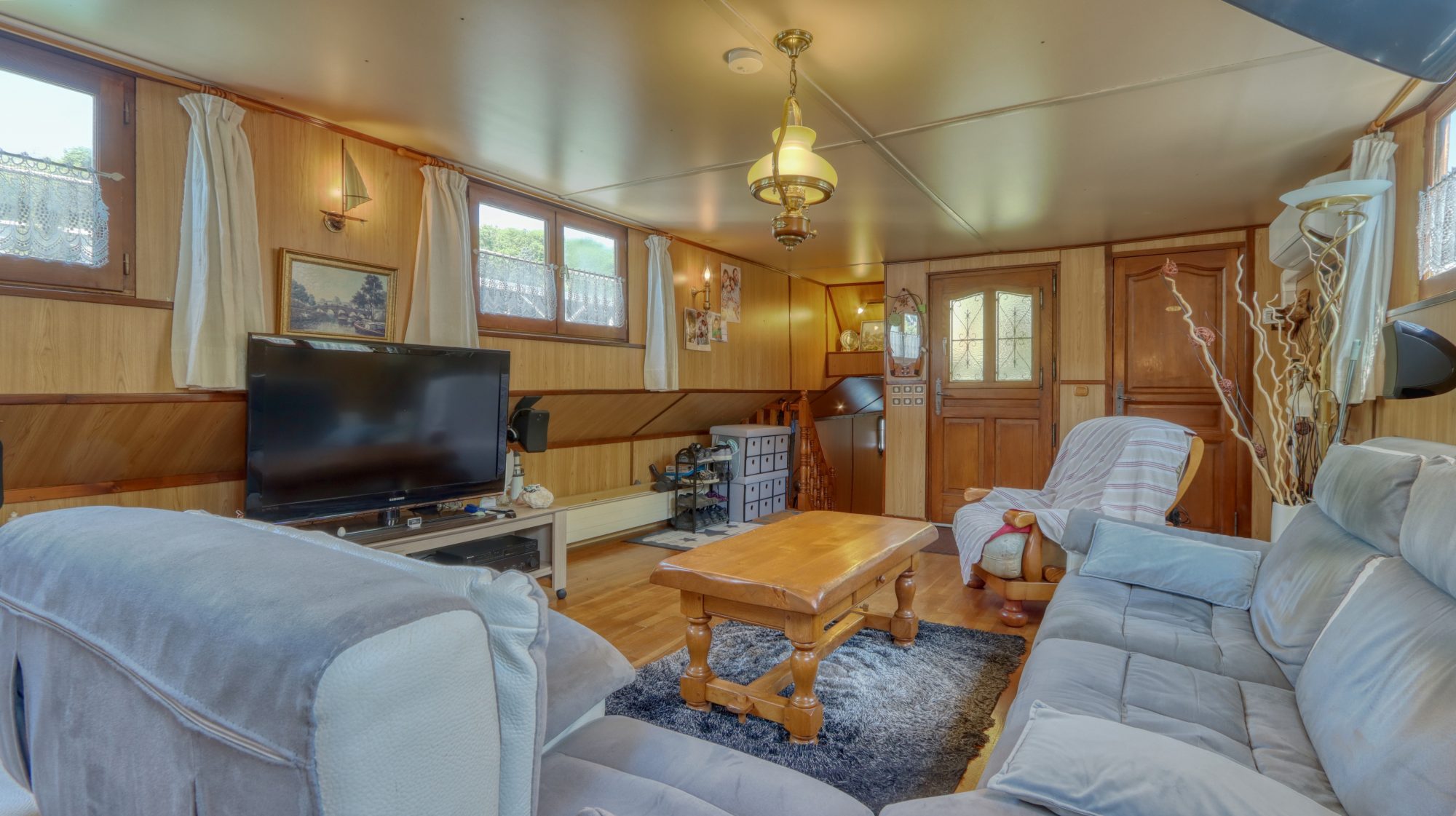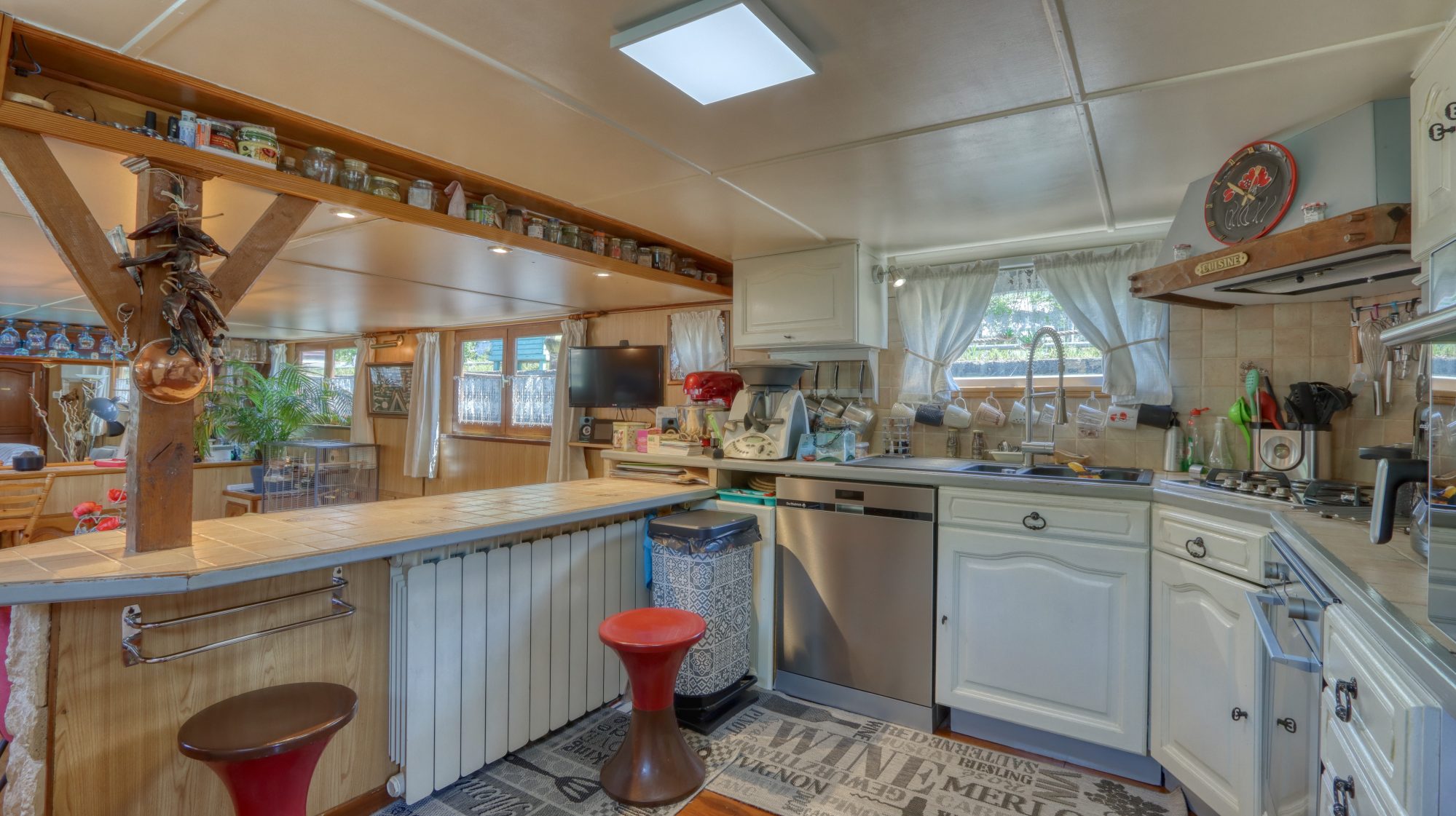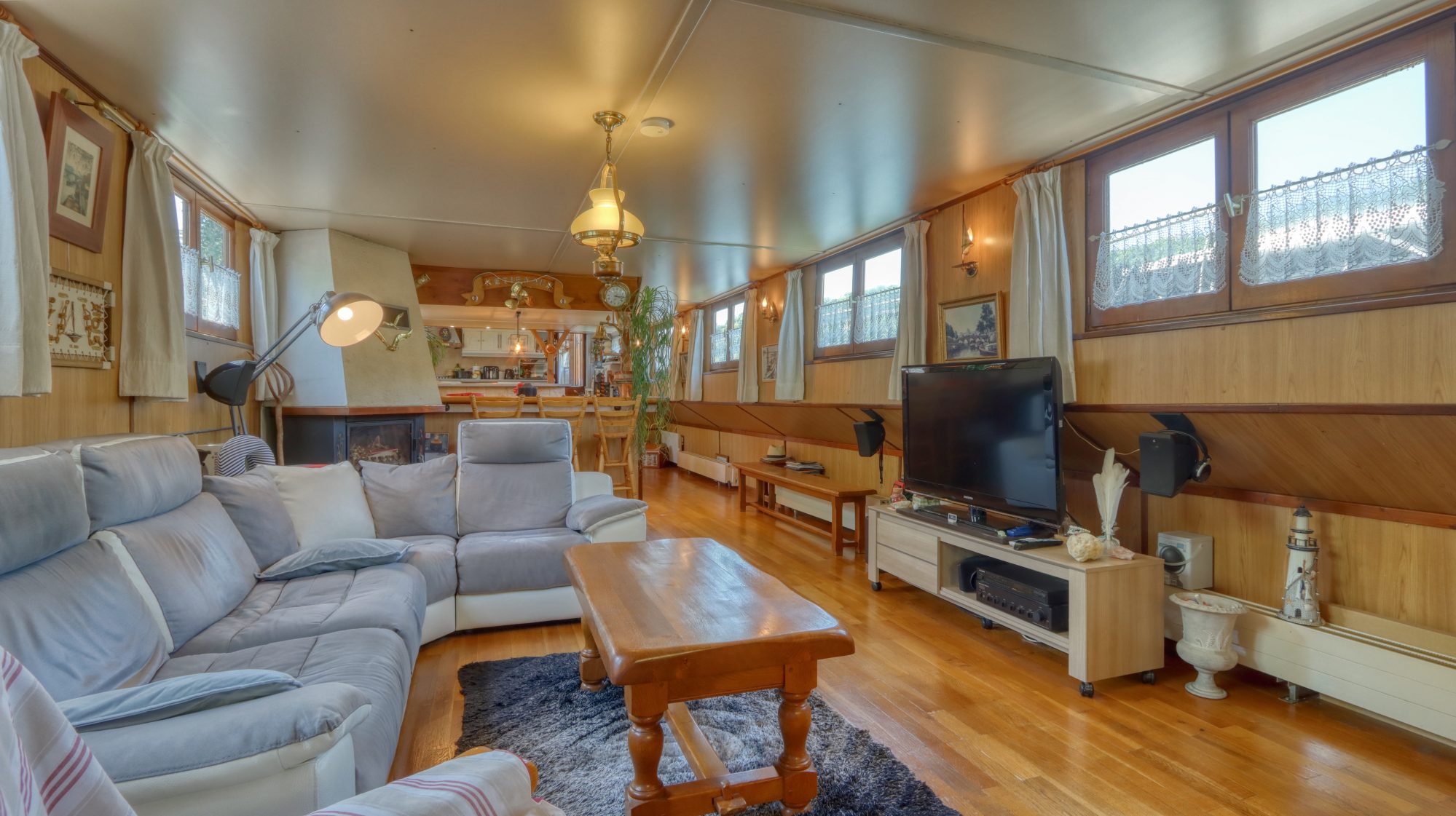 La péniche est entièrement isolée le sol est en bois et les hublots en double vitrage.