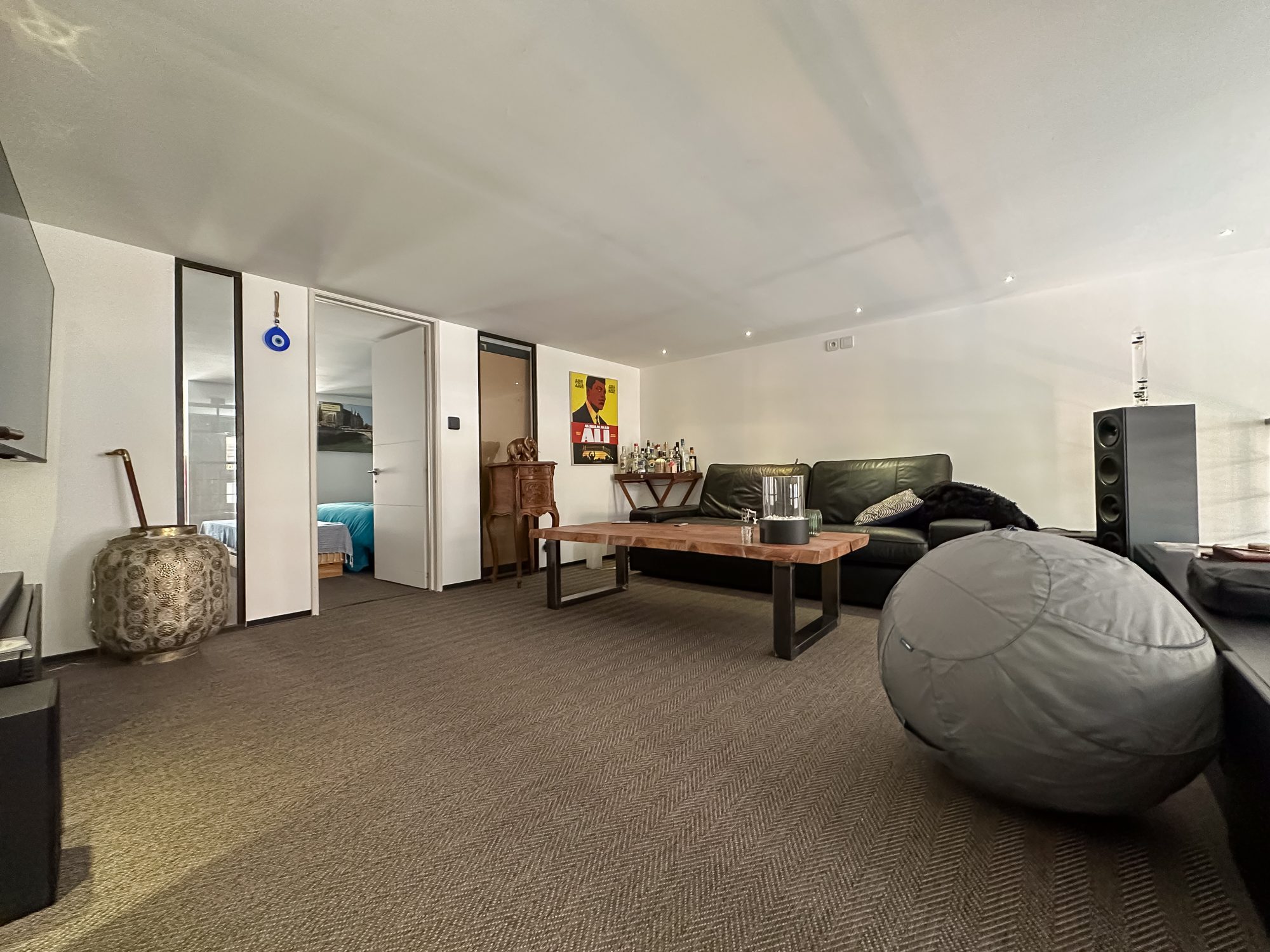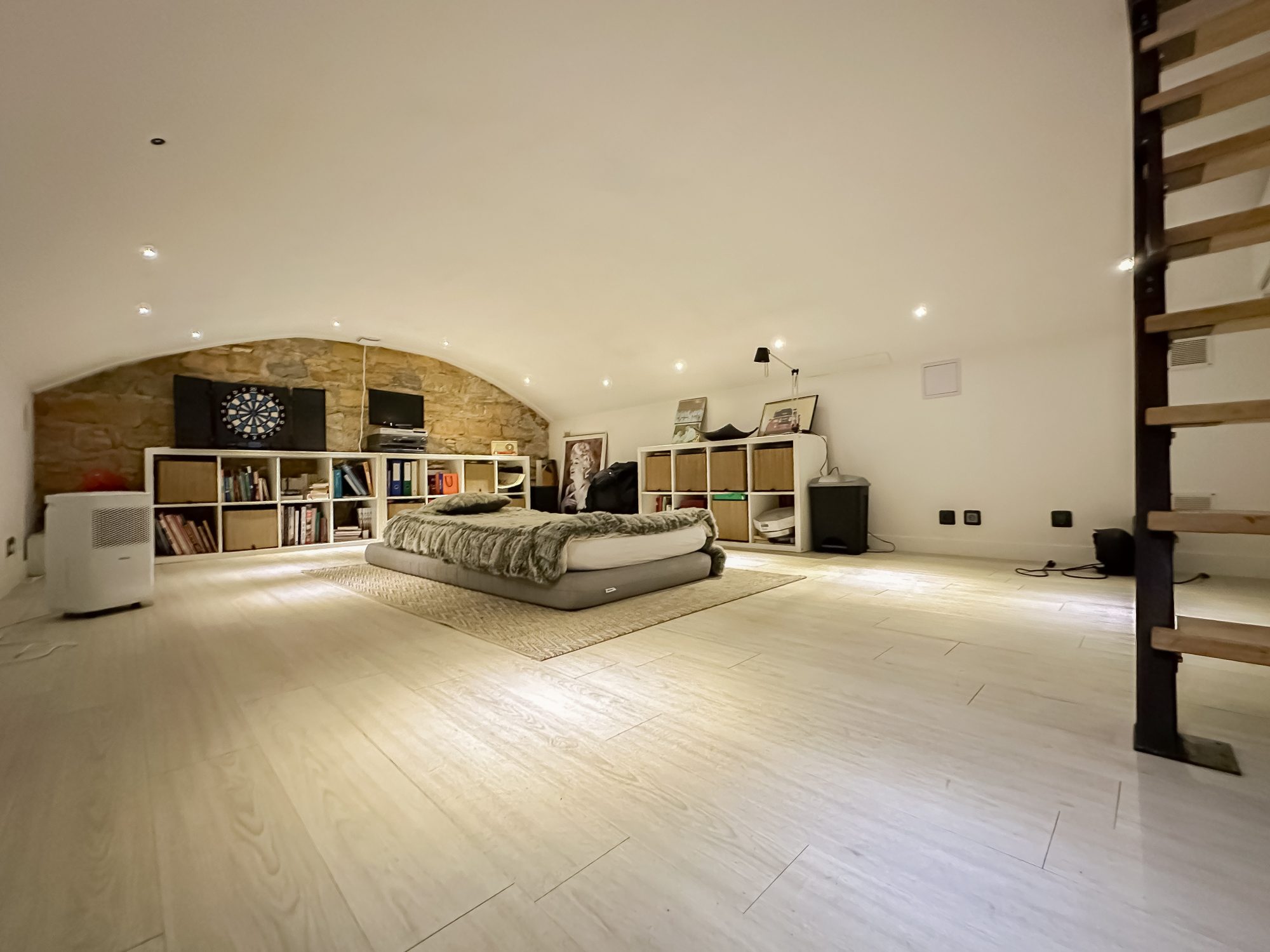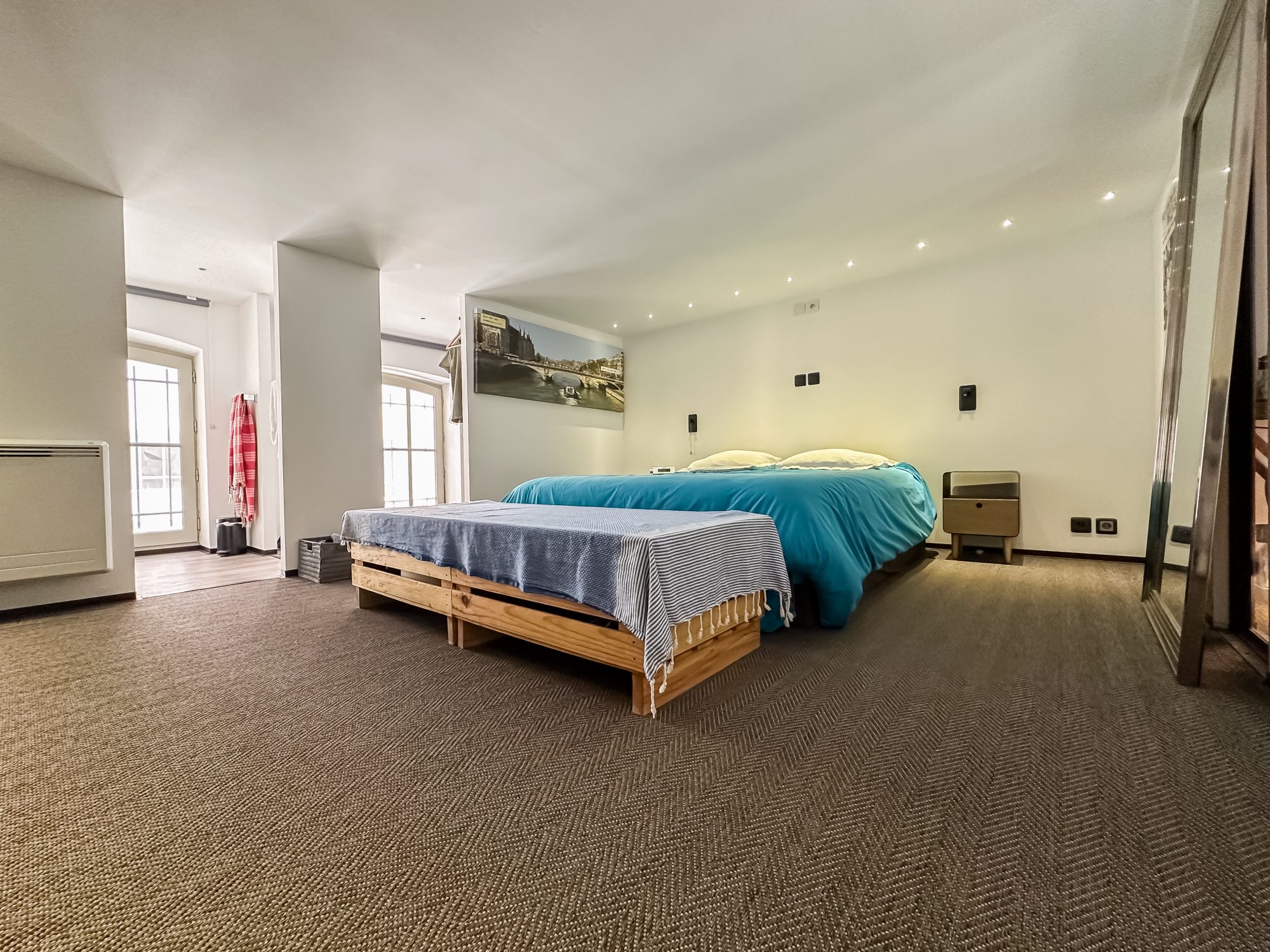 Dégagement à usage de bureau, grand espace salon de 19m², vaste chambre de 23m² avec coin lavabo et dressing.