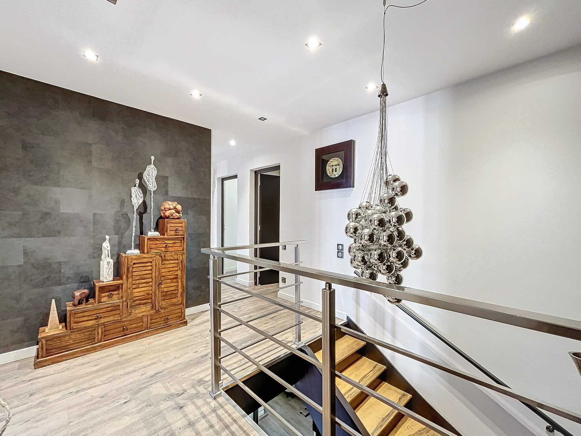 Au premier niveau on découvre le coin jour avec un bel espace de vie qui se compose d'une magnifique cuisine aménagée et équipée avec un coin repas de 22m2 et un séjour de 32m2 très lumineux tous deux avec une terrasse de 10m2 permettant de se détendre avec une vue dégagée et sans vis à vis. Sur ce palier on retrouve un "dressing/buanderie" de 10m2 et un WC indépendant avec lave-main.
