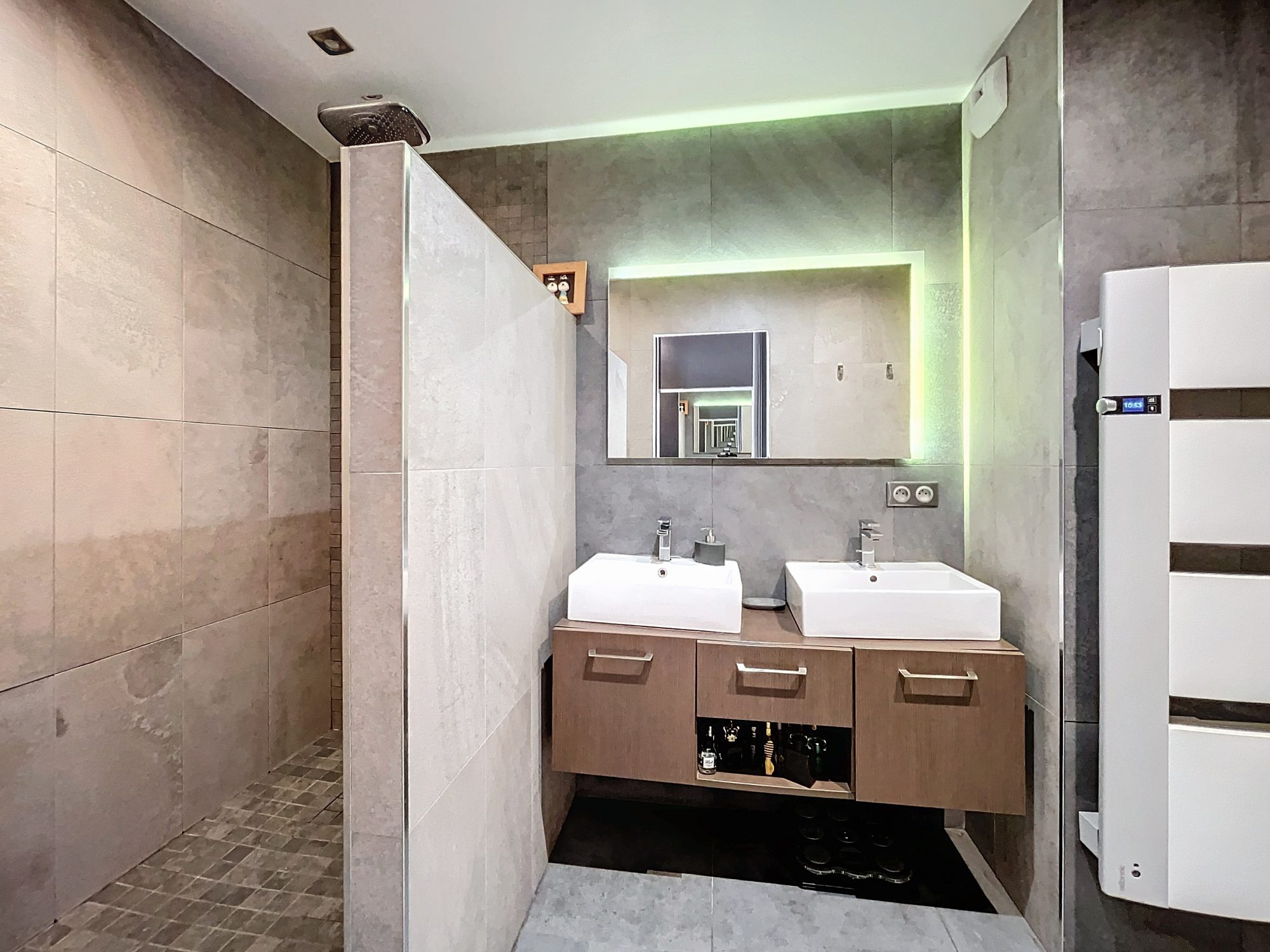 A l'étage se situe l'espace nuit avec 4 chambres, dont 2 de 16m2 avec placard et les deux autres de 11m2, avec une salle d'eau moderne et un WC indépendant, elles donnent toutes sur les 2 terrasses de 10m2 avec une vue PANORAMIQUE.