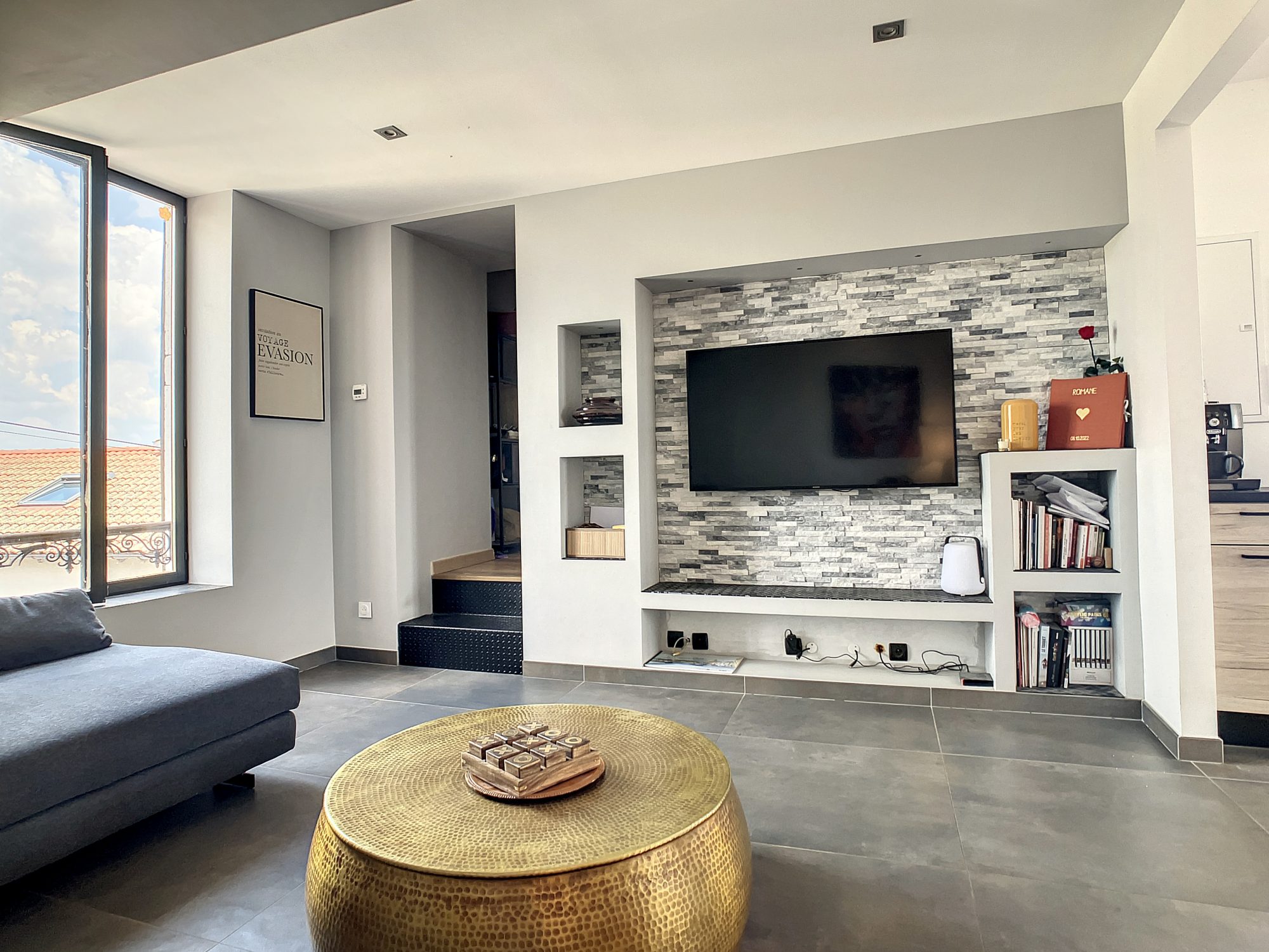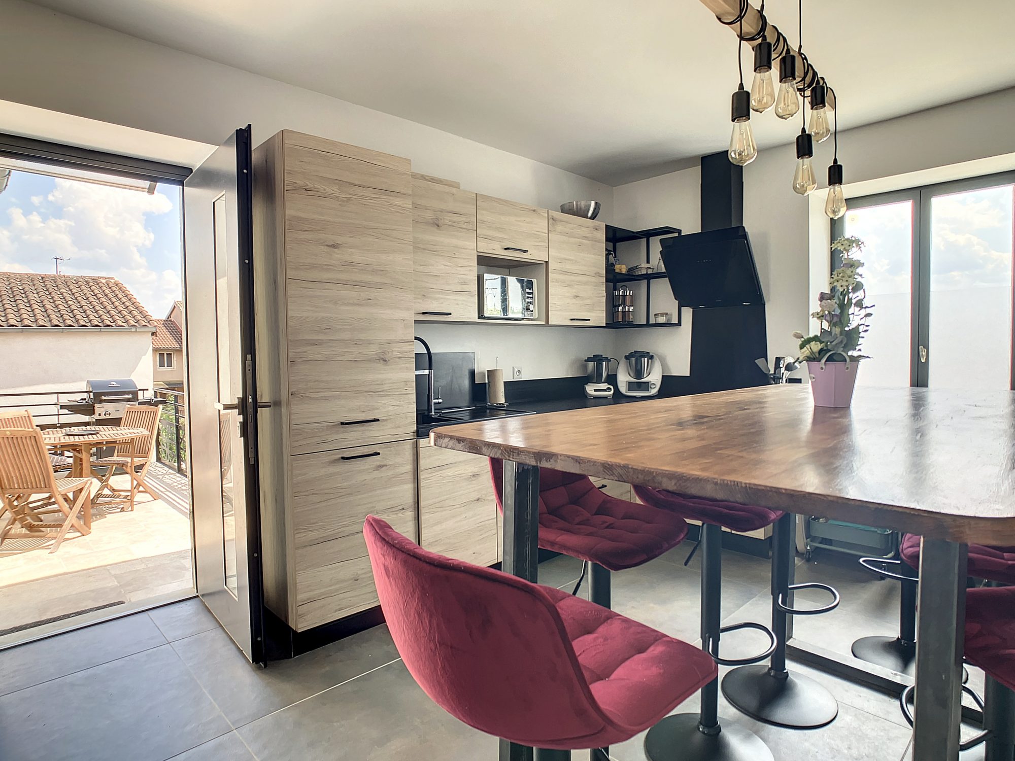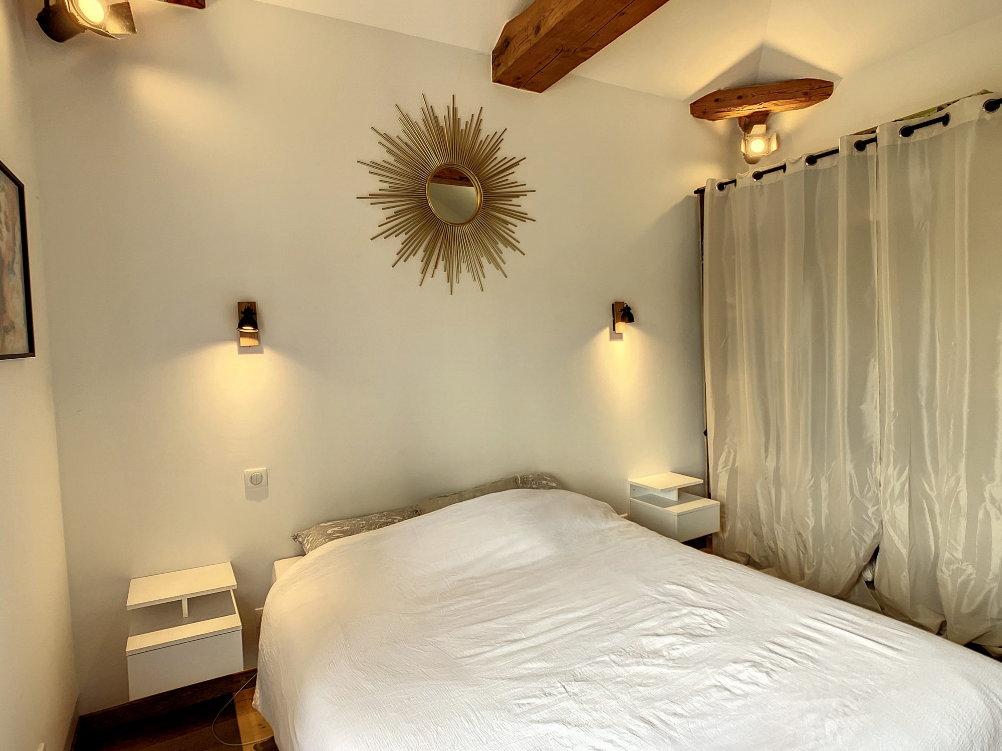 Un escalier métal vous emmène vers l'entrée du duplex qui profite d'un séjour avec cuisine aménagée équipée - terrasse sud ouest directement accessible sur ce niveau. Vous aimerez la chambre parentale aux majestueuses poutres apparentes, équipée d'un dressing et de sa salle d'eau