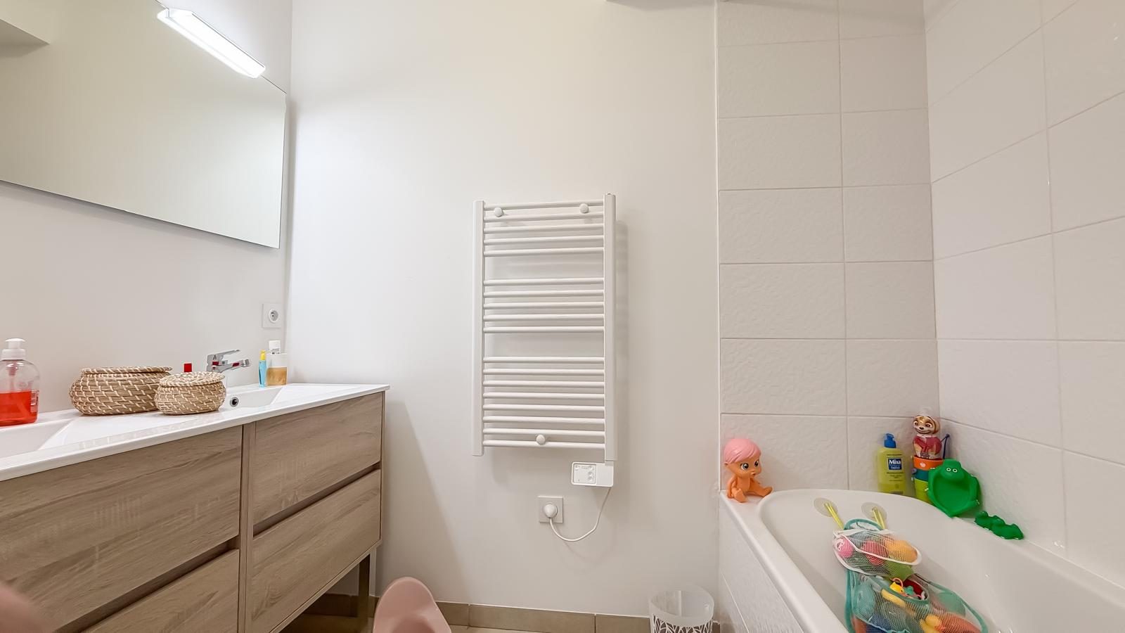 Dans une copropriété de 2022 ce duplex de 93 m2 se compose d'une entrée, d'une cuisine aménagée et équipée ouverte sur la pièce de vie .