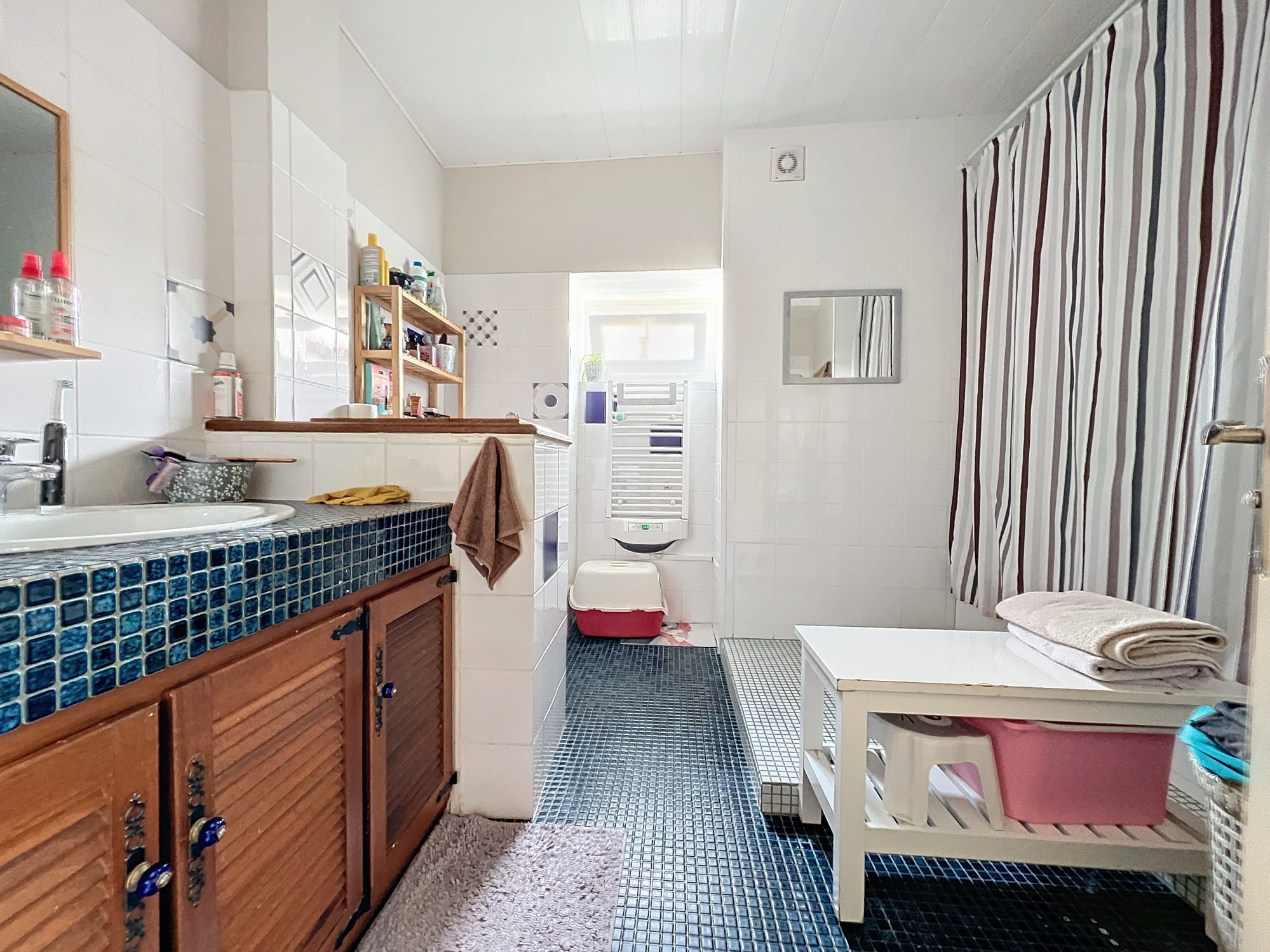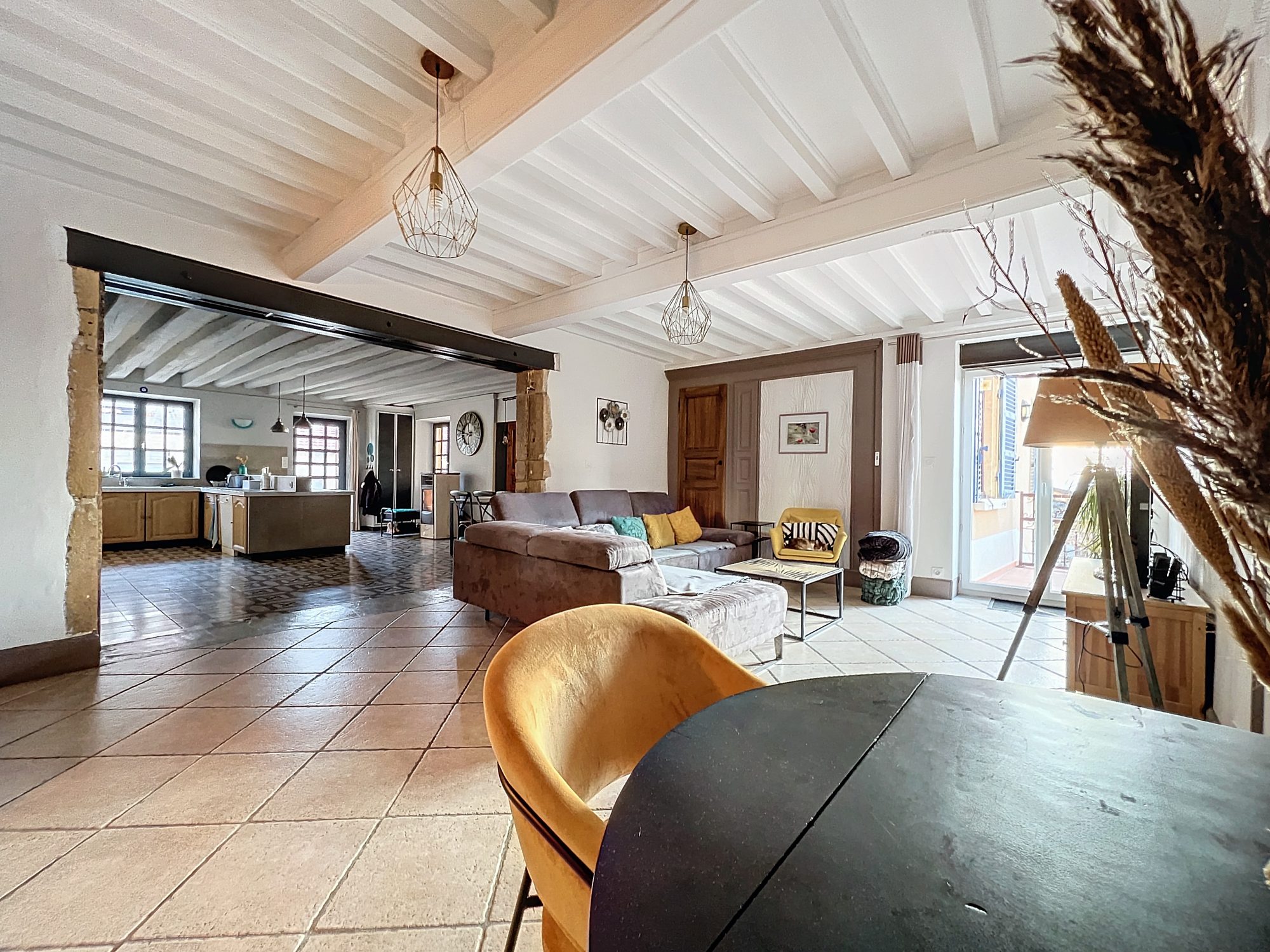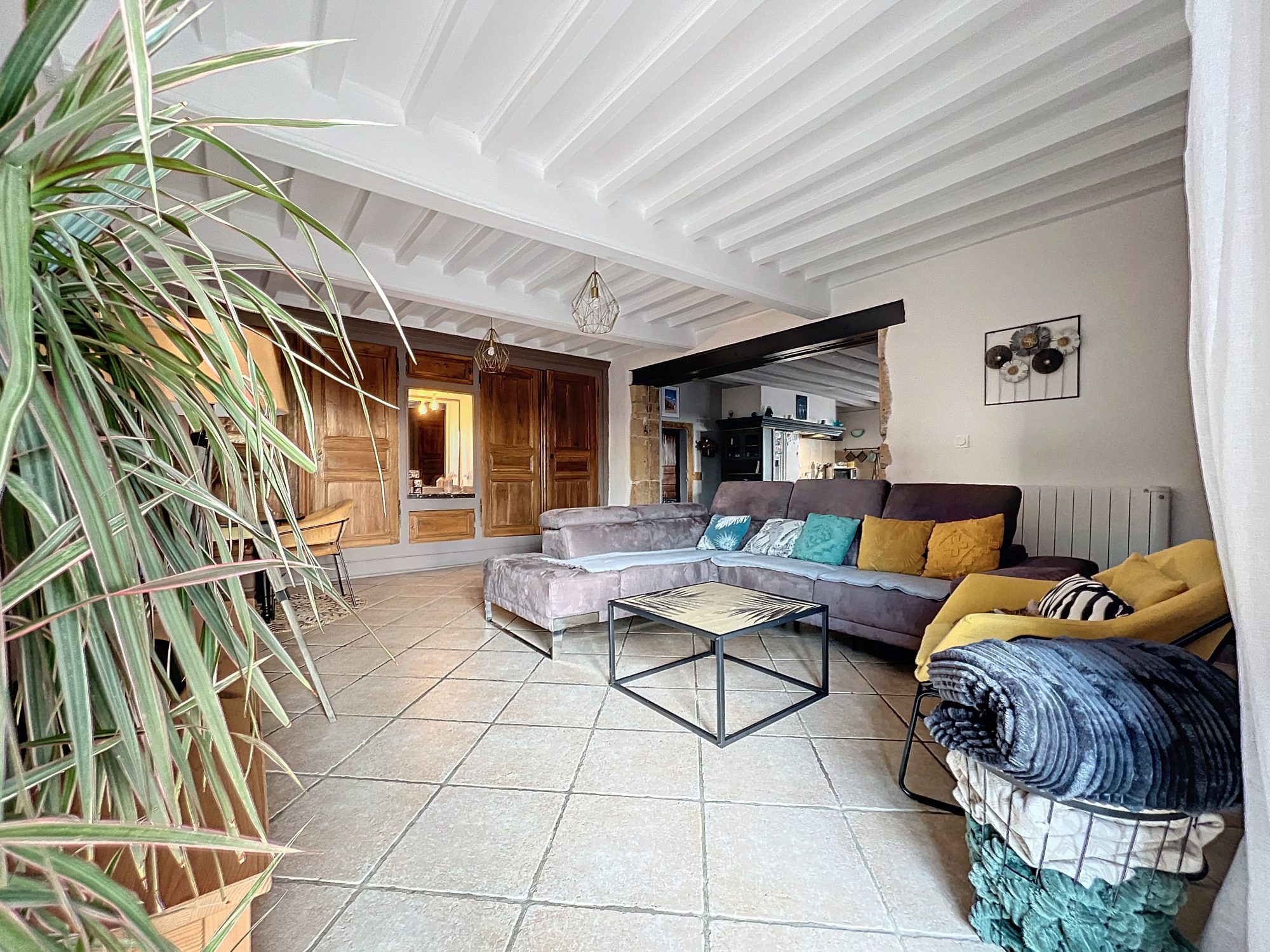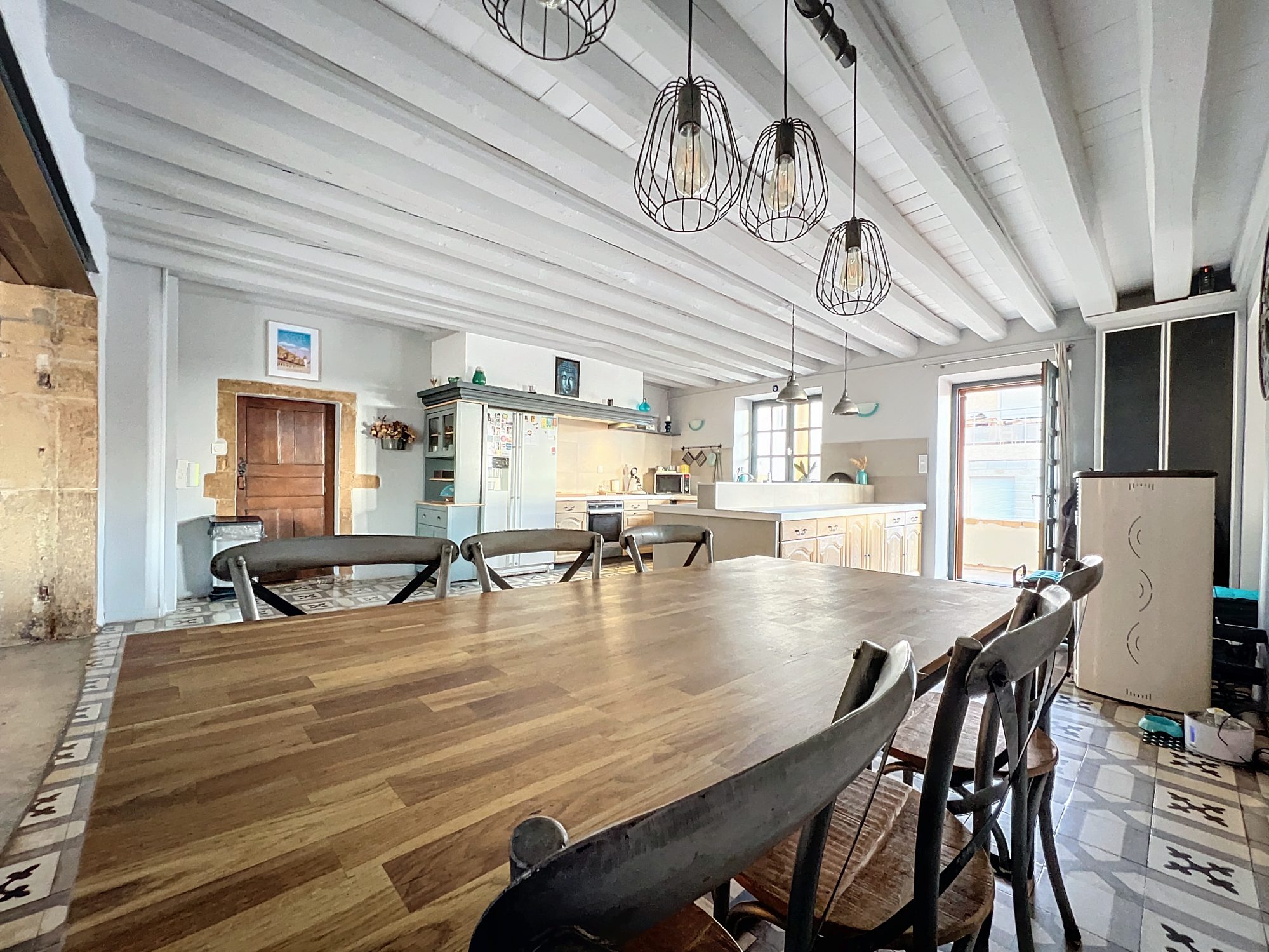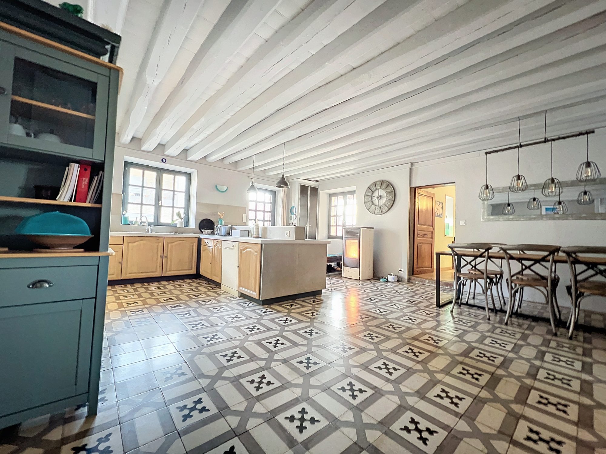 Dès l'entrée, découvrez une magnifique pièce à vivre avec cuisine ouverte meublée et équipée, créant un espace idéal pour des moments conviviaux, (plafonds à la française, carreaux ciments etc...), son poêle à granulés viendra réchauffer vos soirée d'hiver.
