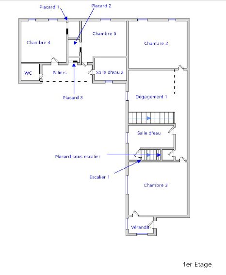 étage : T3 potentiel avec accès indépendant depuis la cour intérieure : grand dégagement - 2 grandes chambres - salle d'eau avec toilette