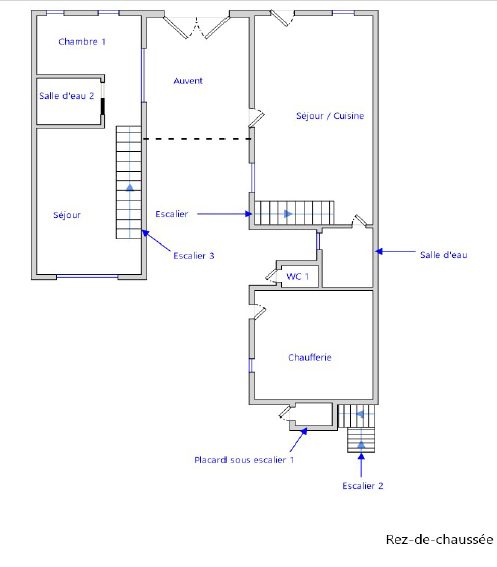 en rdc T2 potentiel avec accès indépendant depuis la ruelle et depuis la cour: pièce de vie avec cuisine - salle d'eau toilette