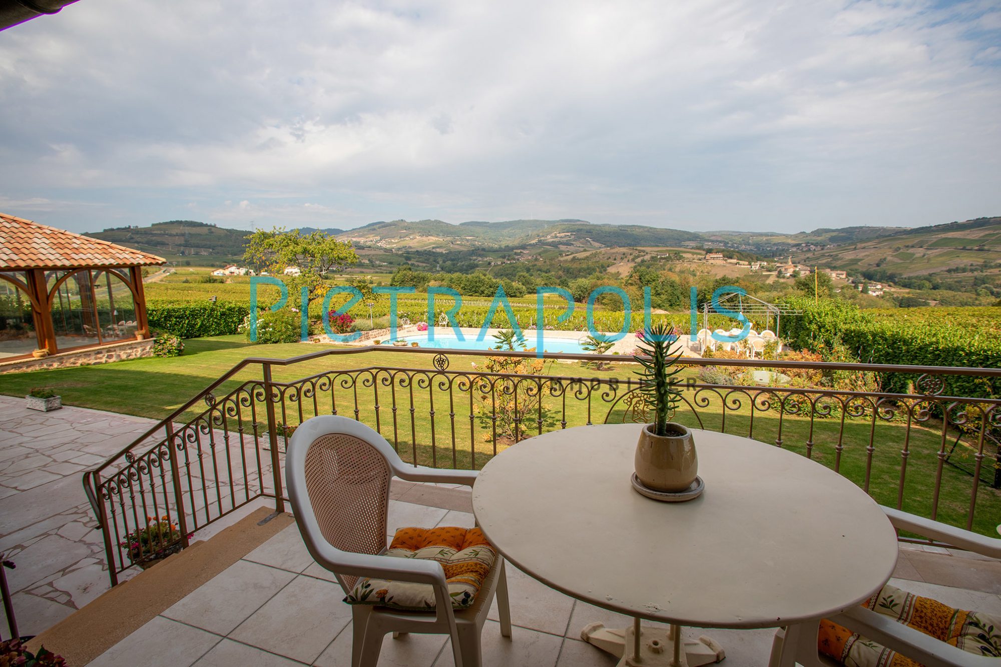Cette propriété vous offre un panorama exceptionnel sur le beaujolais et le mâconnais dont on ne peut se lasser.