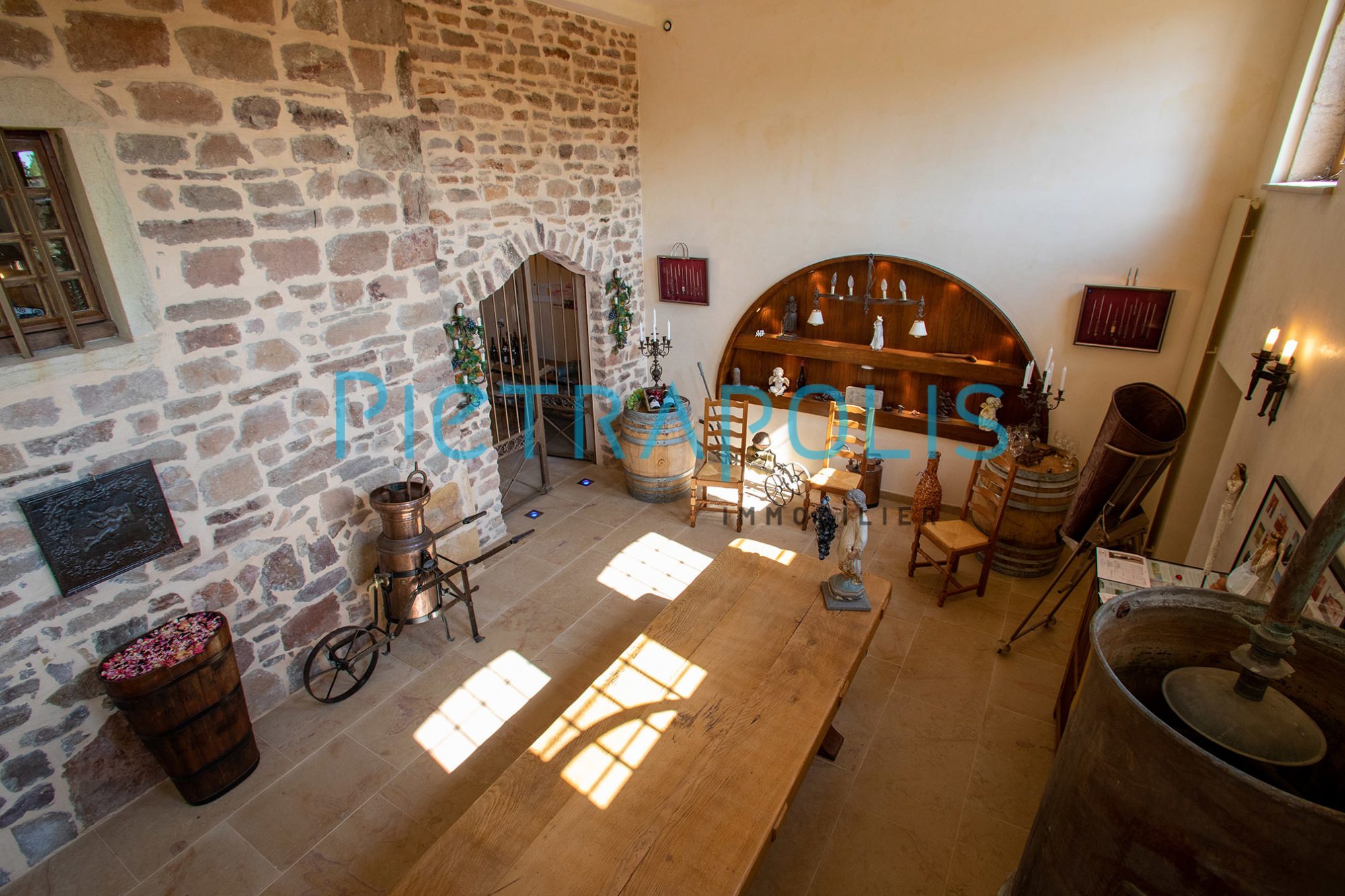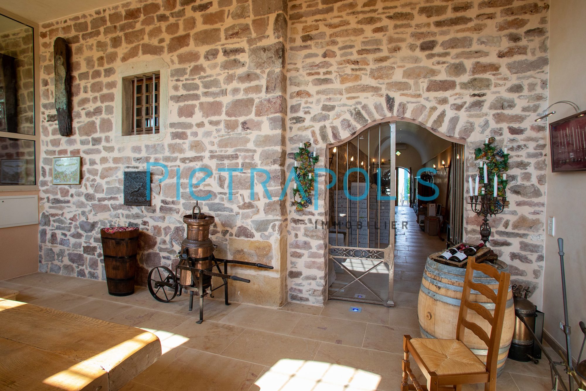 Disposant de plusieurs entrées, vous pourrez accueillir vos invités soit par le caveau s'ouvrant sur une galerie de 14 m et donnant sur une magnifique salle de dégustation ou par deux autres entrées plus intimistes, donnant sur la partie privatives de la propriété.