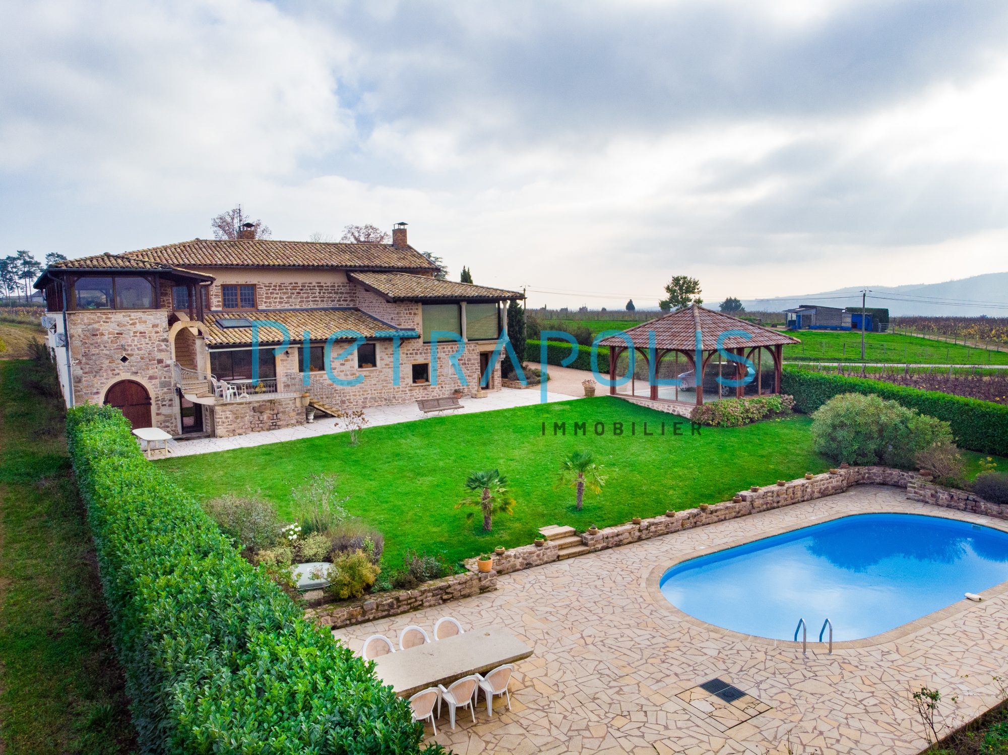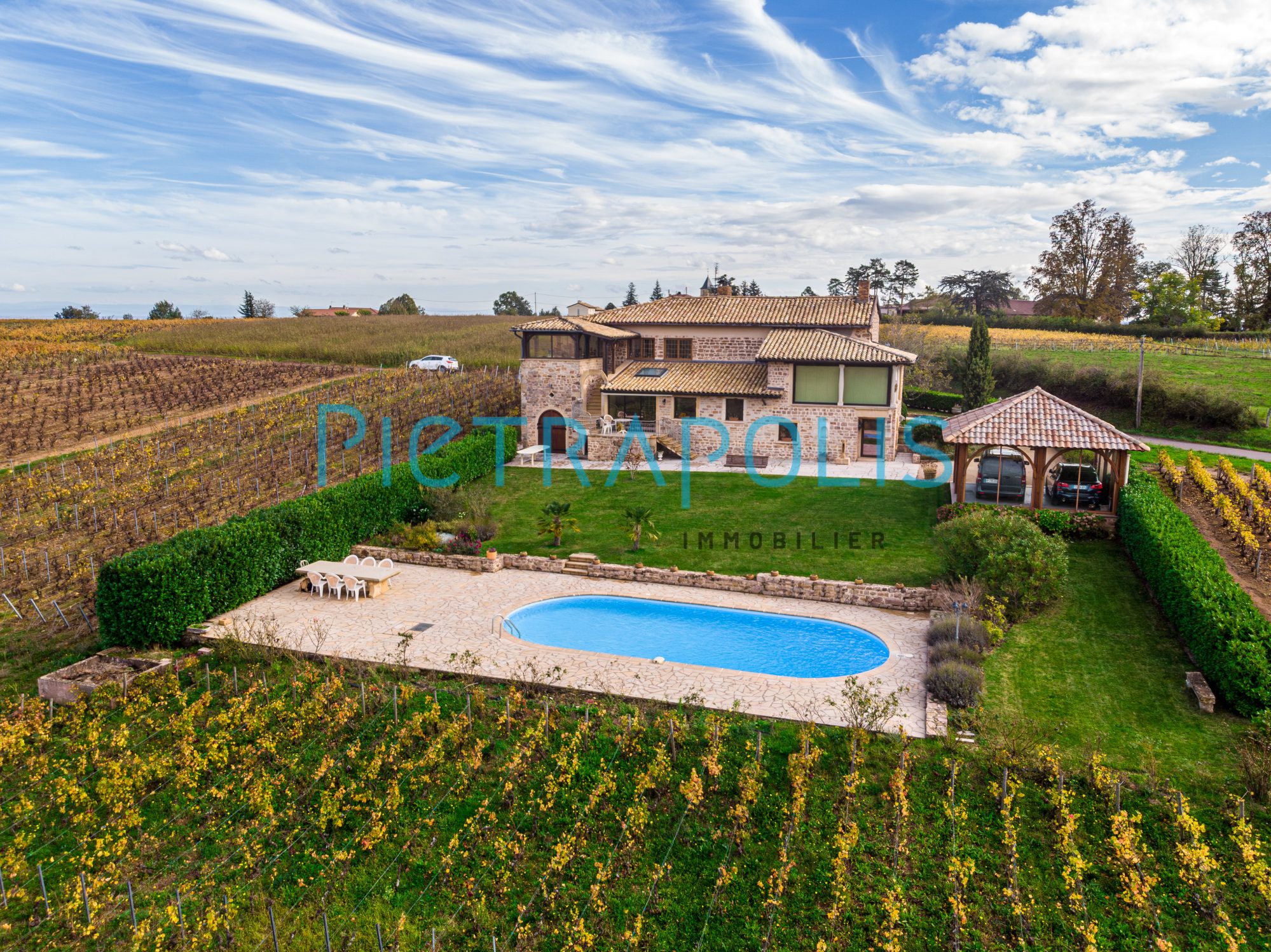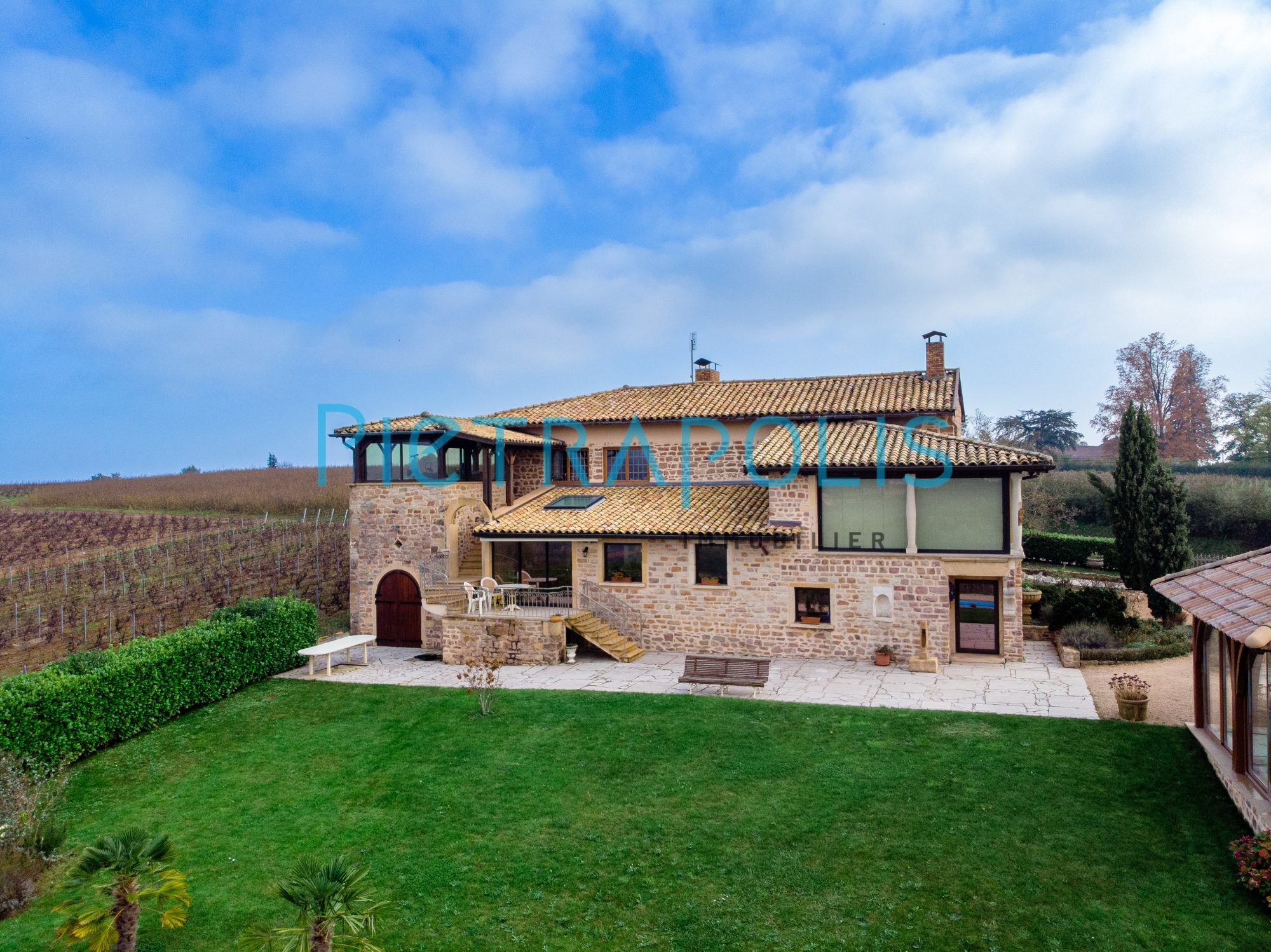 Venez découvrir au coeur des crus du Beaujolais - sud Bourgogne, une magnifique propriété en pierre de 450 m² environ, édifiée sur une parcelle de terrain de 2155 m² dont 600 m² de vigne Bio en fermage pour laquelle 48 bouteilles de vins vous seront remises chaque année.