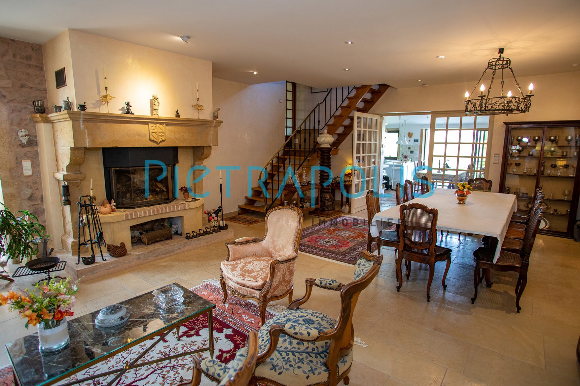 La partie privative se compose, au rez-de-chaussée d'une pièce de vie de 50 m² avec sa cheminée suivie d'une très belle véranda. Une cuisine dinatoire et son arrière cuisine de 30 m² environ donnant sur un balcon avec une vue exceptionnelle pour des repas en famille et entre amis.