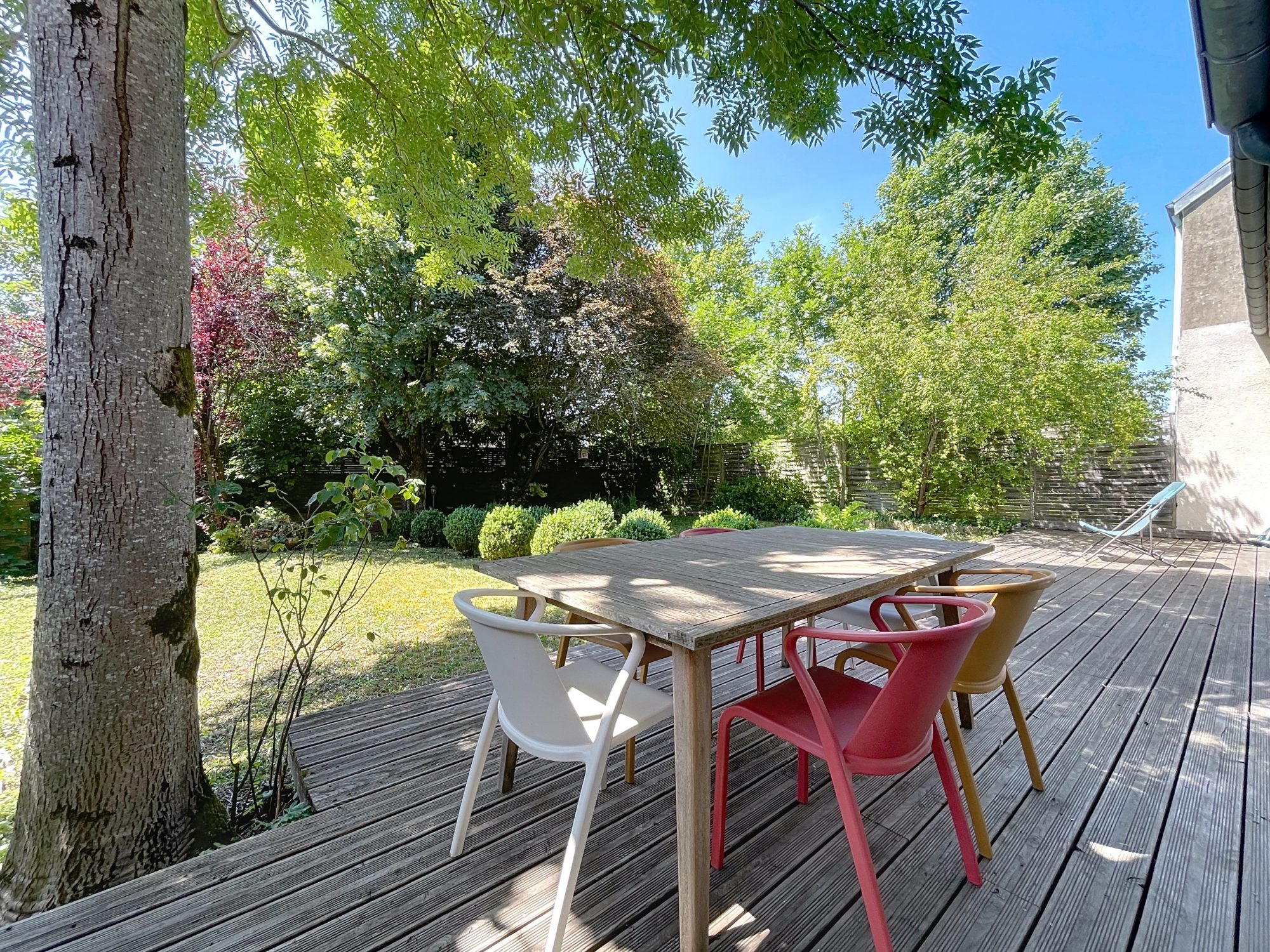 Vous profiterez pleinement des beaux jours grâce à la terrasse et au jardin intimiste situés à l'arrière de la maison.