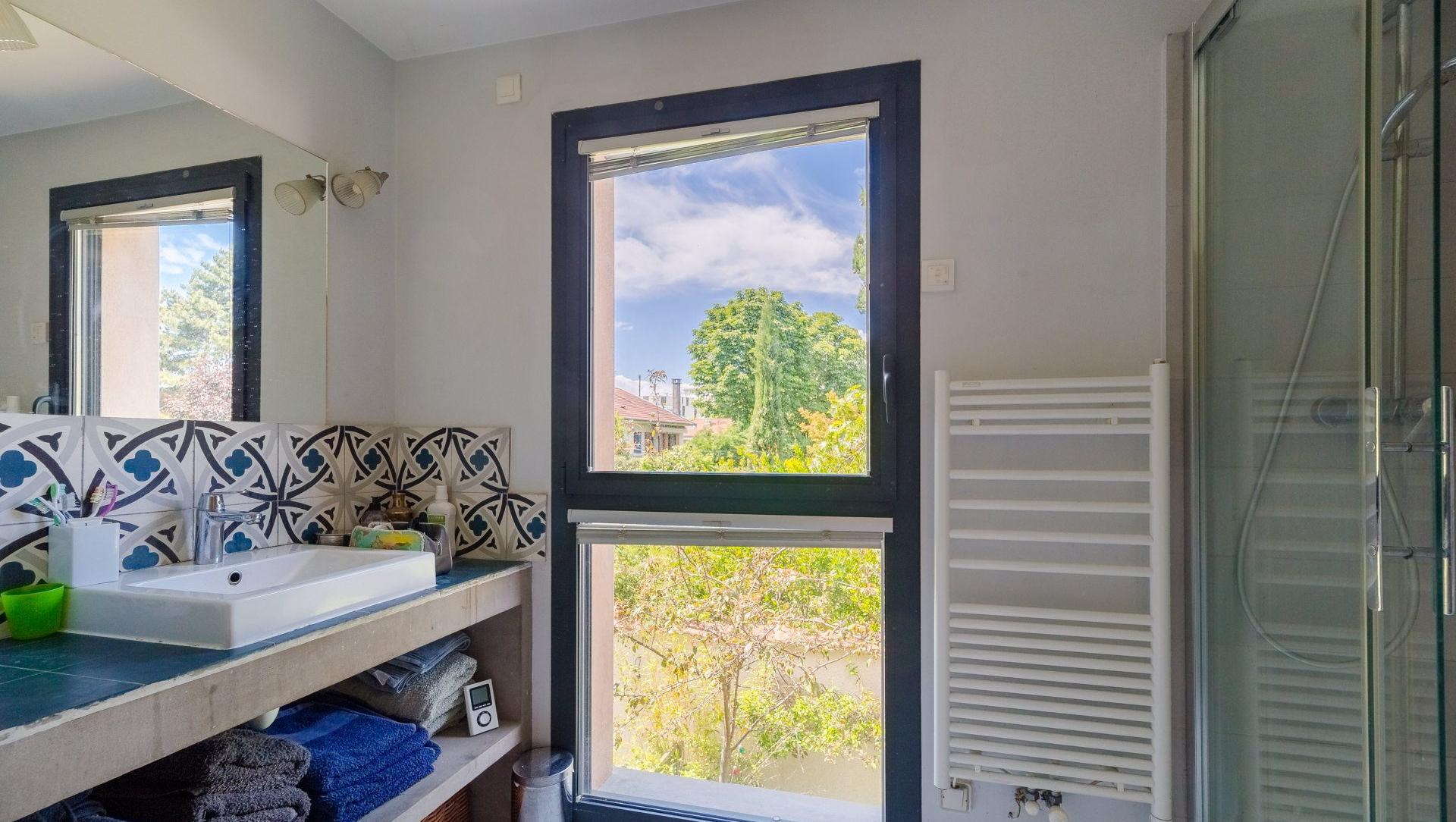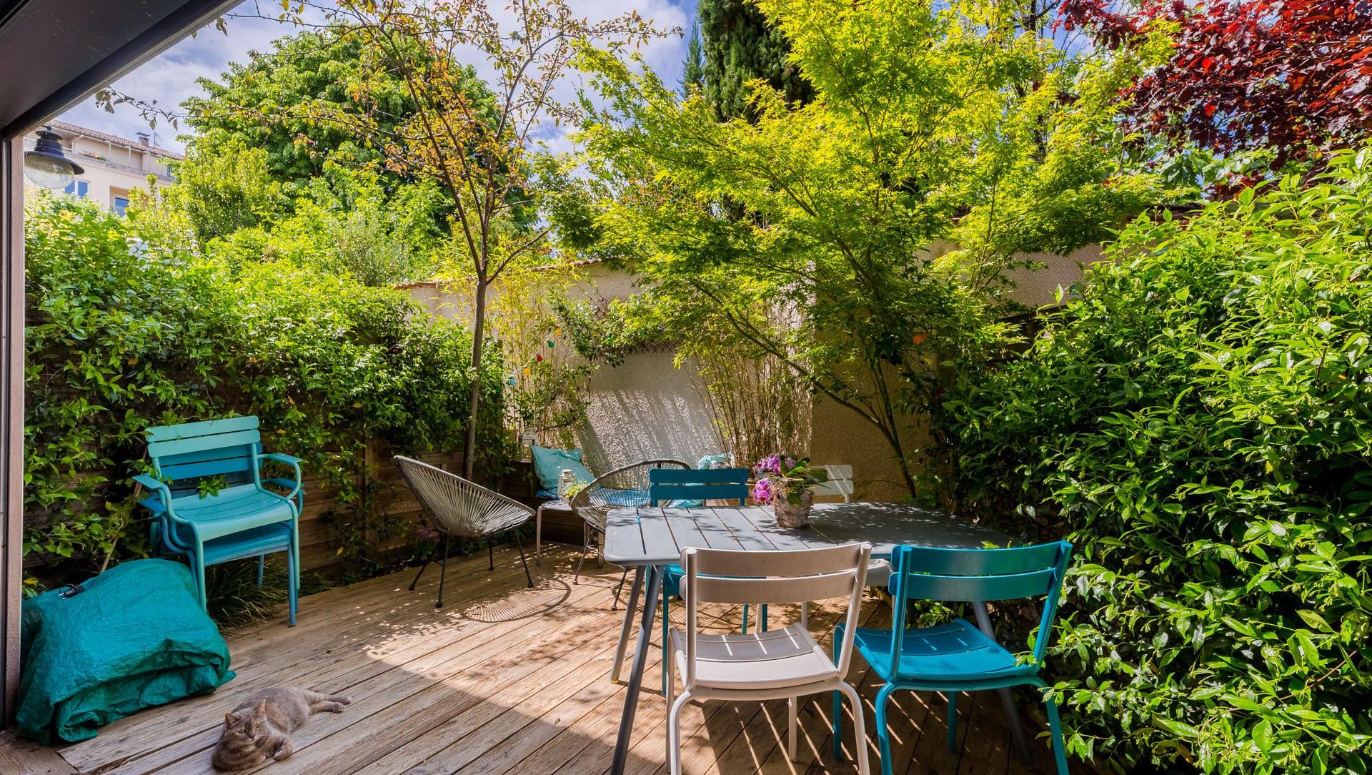 Très jolie maison d'architecte proposant une terrasse, un magnifique patio, une place de parking sécurisée, à deux pas du métro Hénon.