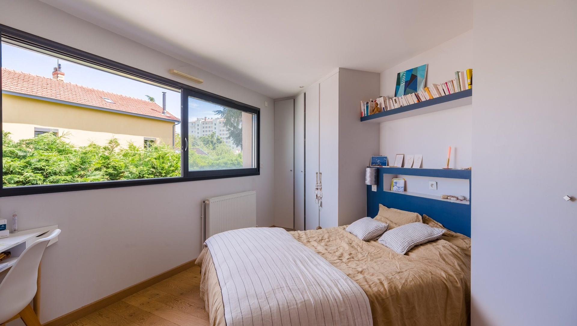 Maison d'architecte de 2015 orientée Sud et située sur le plateau ouest de la Croix-Rousse bâtie sur deux étages à 400m du métro Hénon.